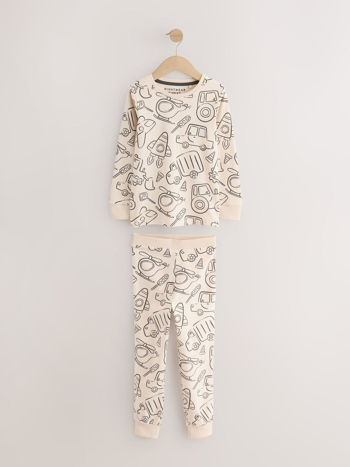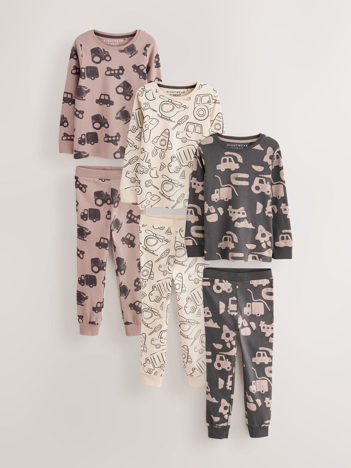 Brown/Cream Transport Mini Snuggle Pyjamas 3 Pack (9mths-10yrs)