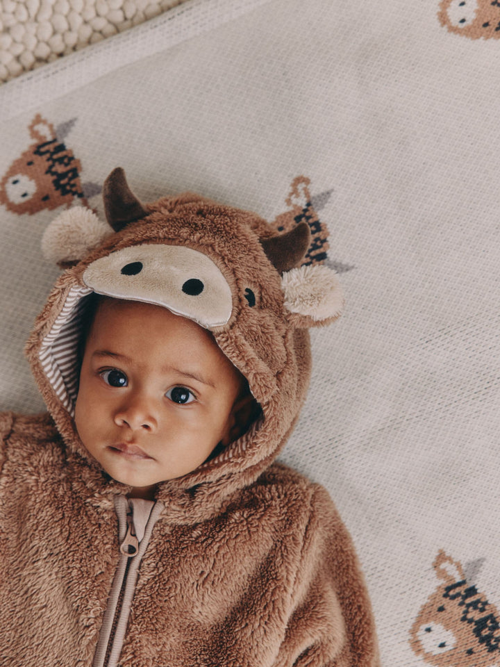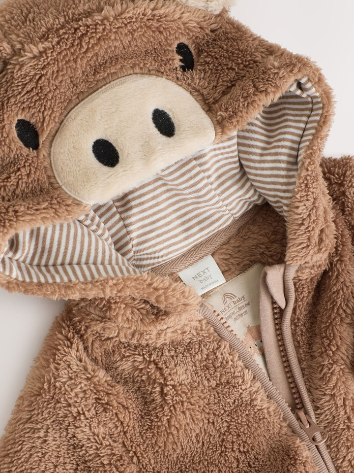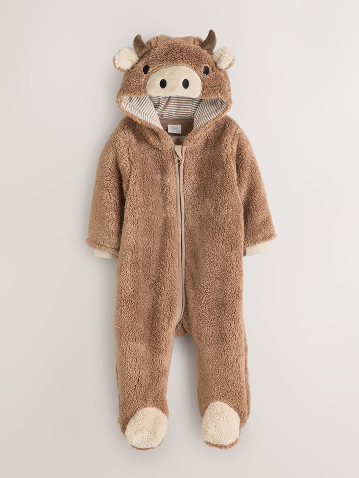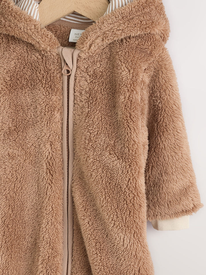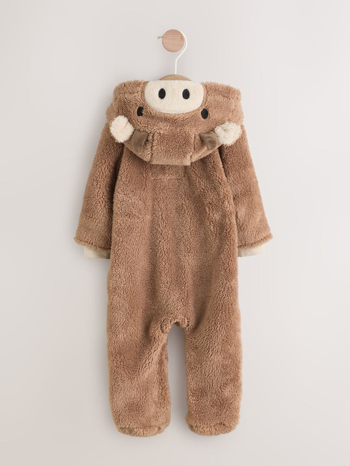 Brown Hamish Hooded Baby Fleece Pramsuit (0-18mths)