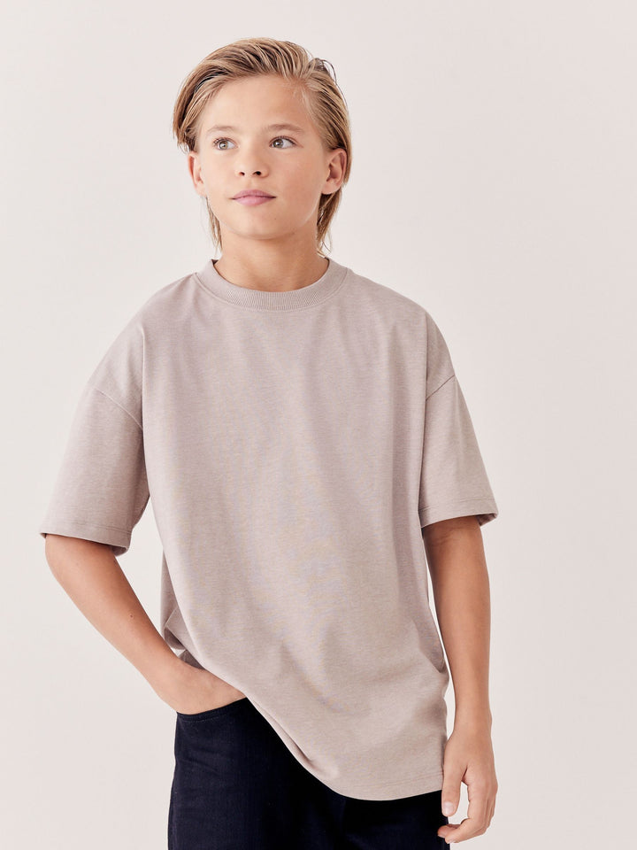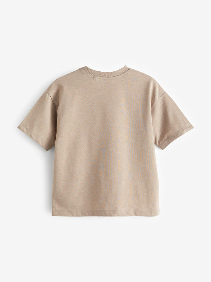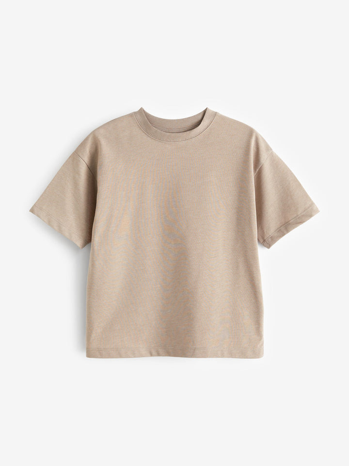 Designed in an oversized fit for that slouchy yet stylish look, our relaxed cotton short-sleeved brown natural T-Shirt is a wardrobe must-have. A wider fit and dropped shoulder detail. Relaxed fit Dropped shoulder detail Short sleeves 180gsm Single Jersey Machine washable. 65% Polyester, 35% Cotton. Country of Origin: Bangladesh