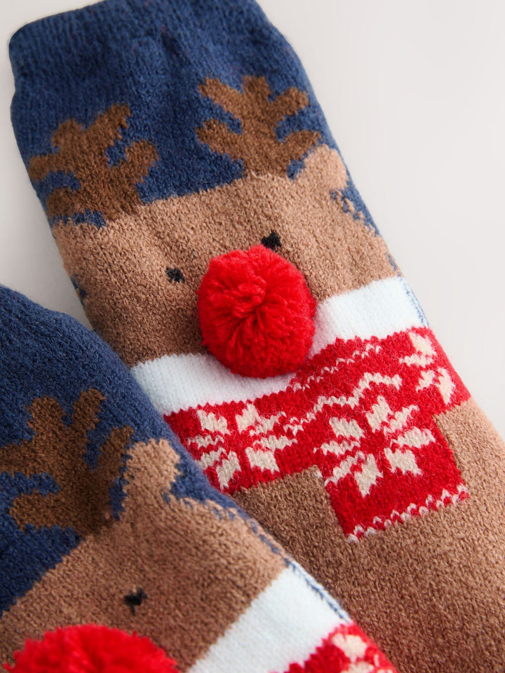 Cosy up this season with this festive 1 pack of socks, perfect for keeping tiny toes warm at Christmas. Featuring a playful reindeer design and soft pom pom detail, these socks include anti-slip soles to provide better grip on wooden or tiled floors. Socks 1 pack Reindeer Christmas design Pom pom detail Anti-slip soles 80% Acrylic, 19% Polyester, 1% Elastane. Country of Origin: China