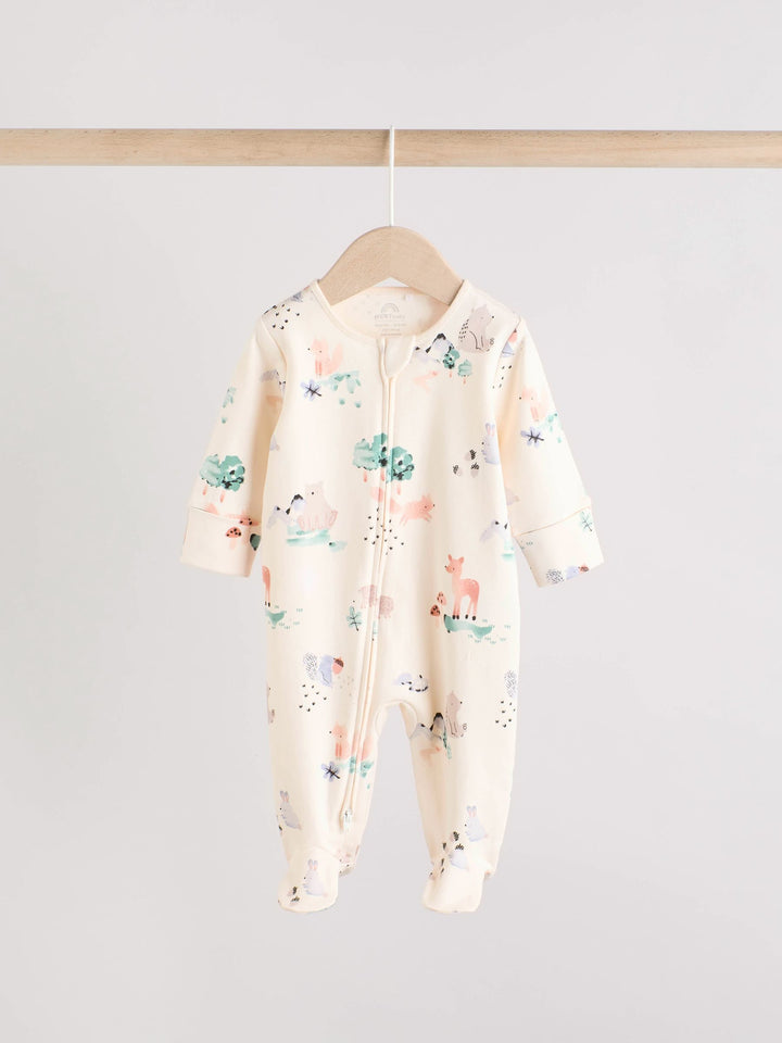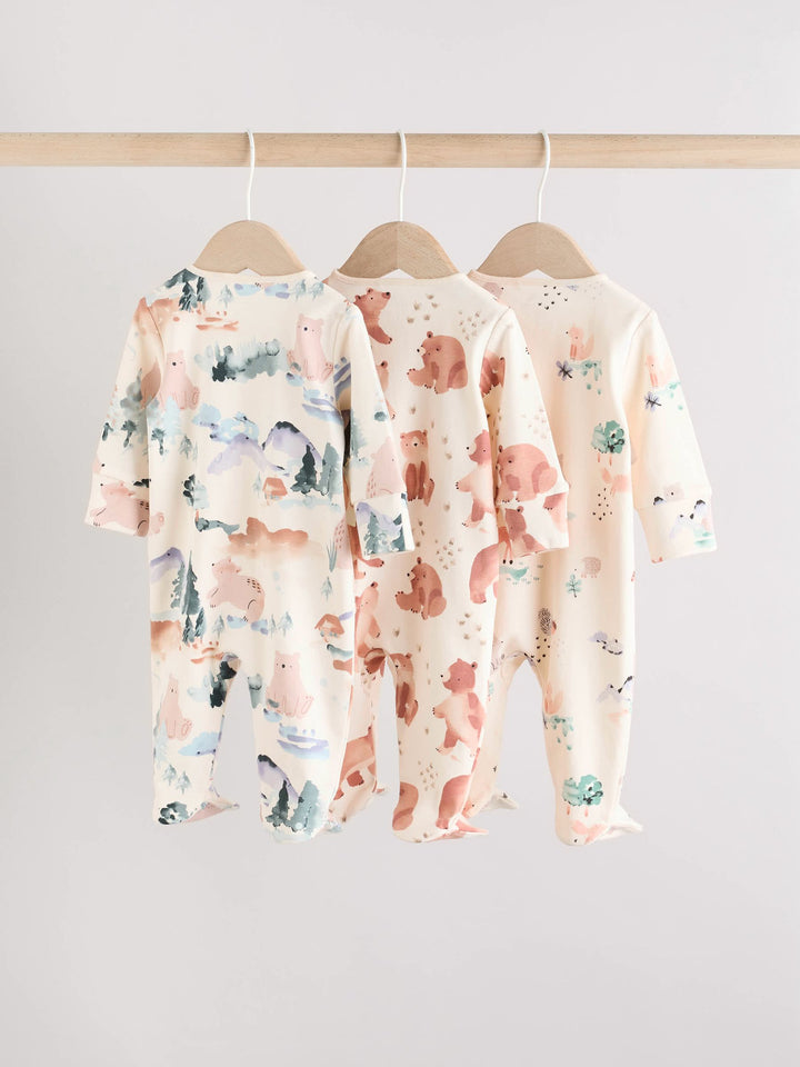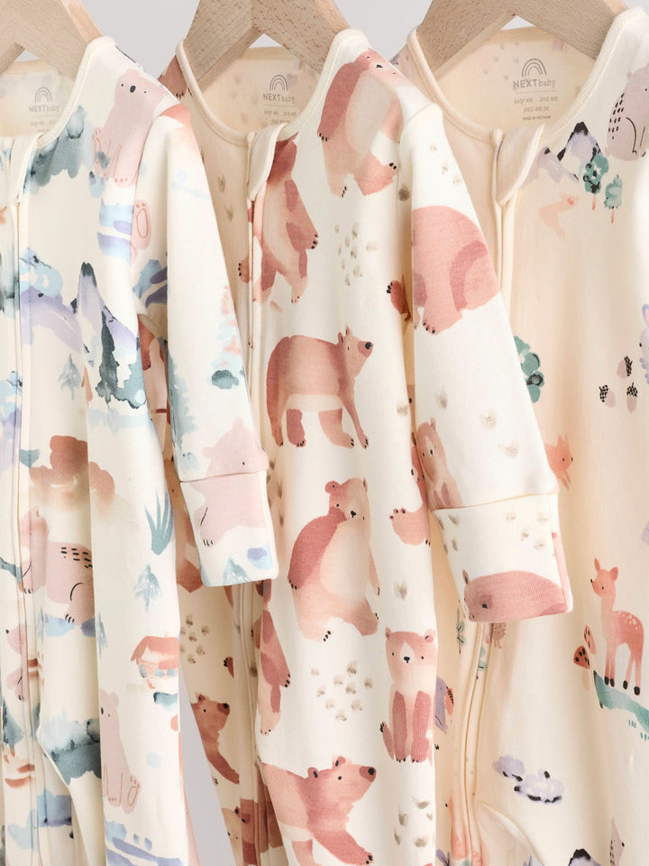 Brown/Orange Baby Two Way Zip Sleepsuits 3 Pack (0-2yrs)