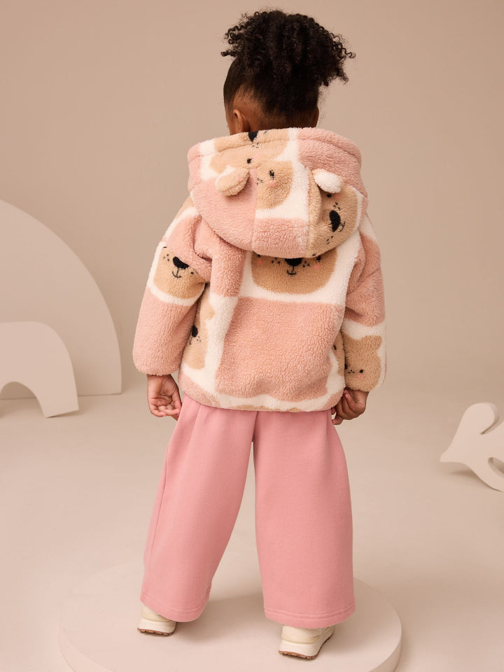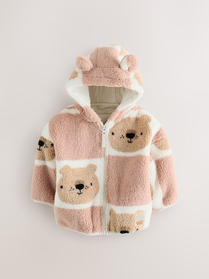 Brown Teddy Bear Print Zip Through Fleece (3mths-7yrs)
