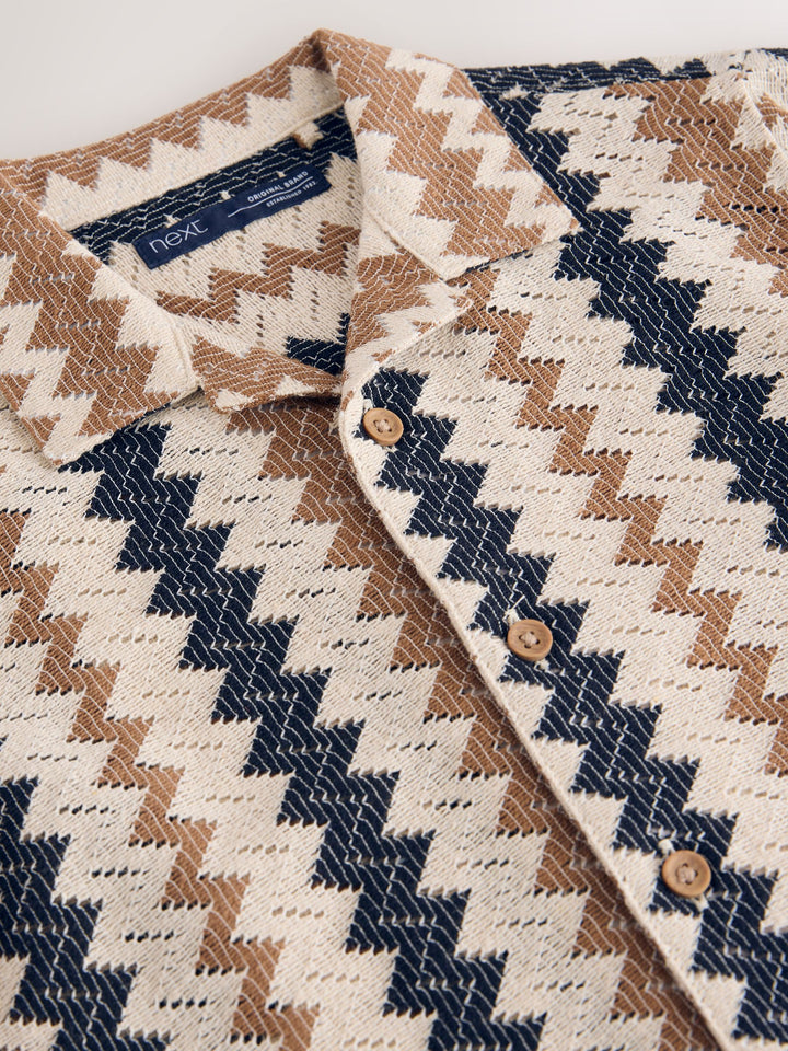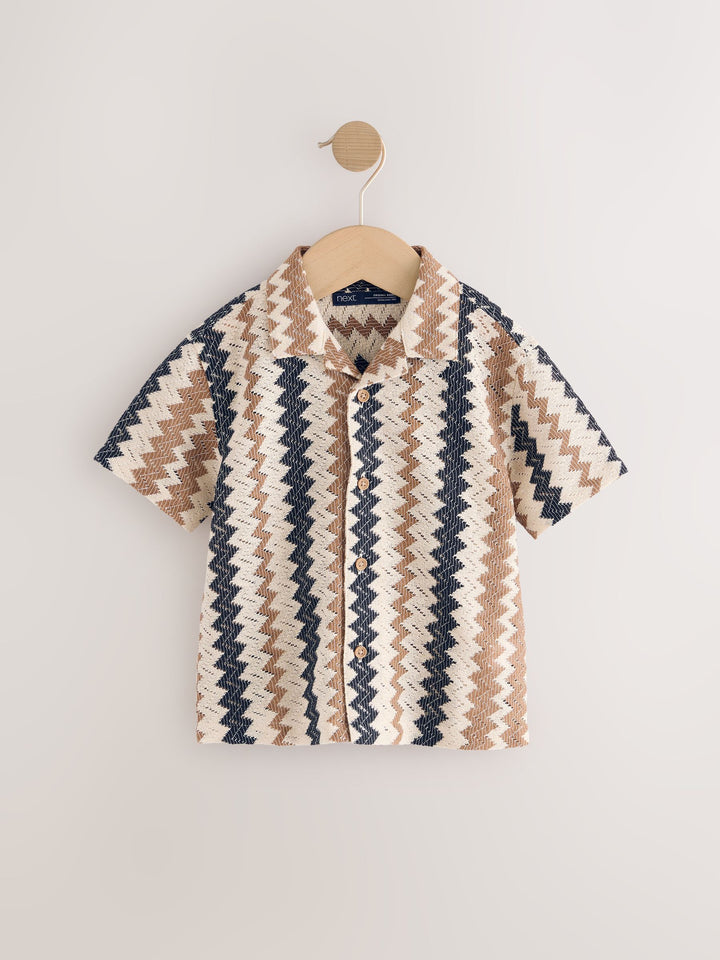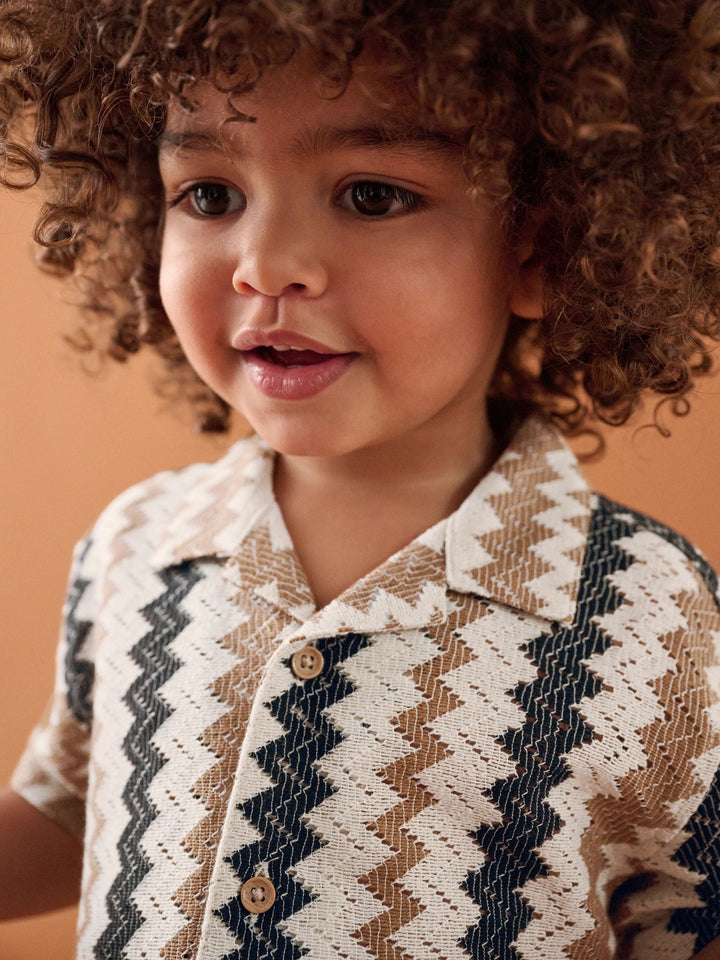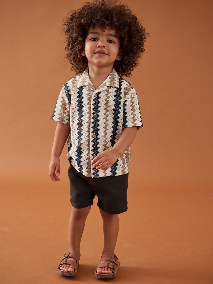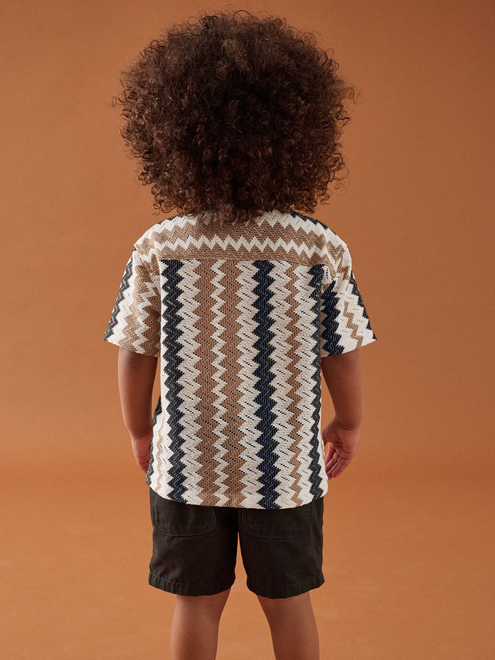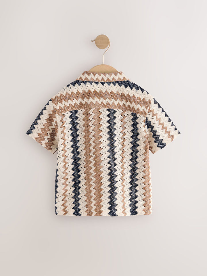 Brown Zig Zag Stripe Short Sleeves Textured Shirt (3mths-7yrs)