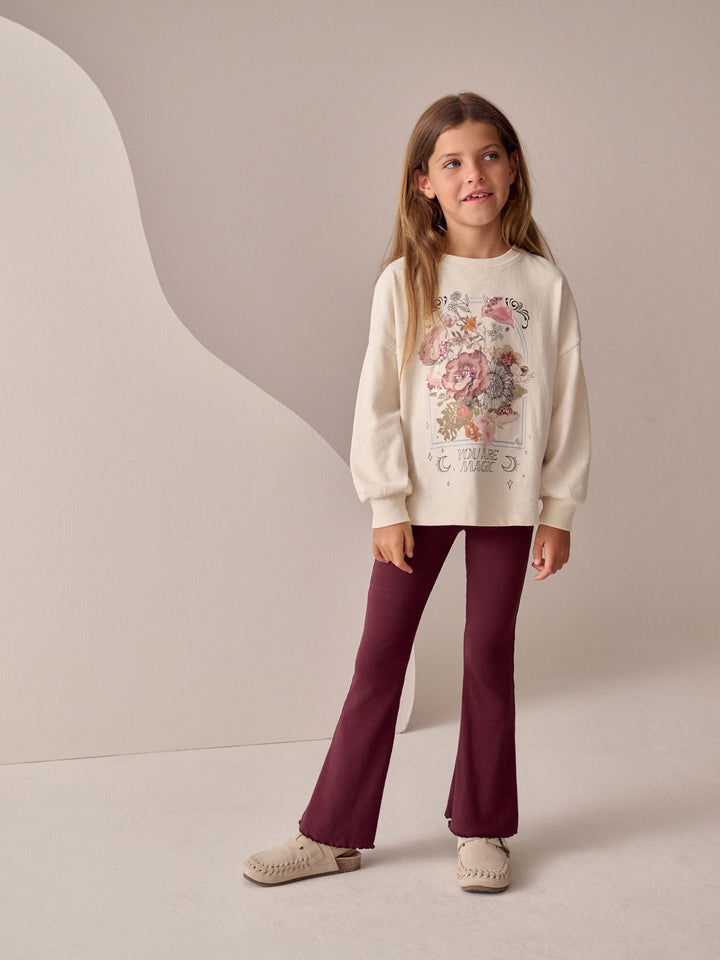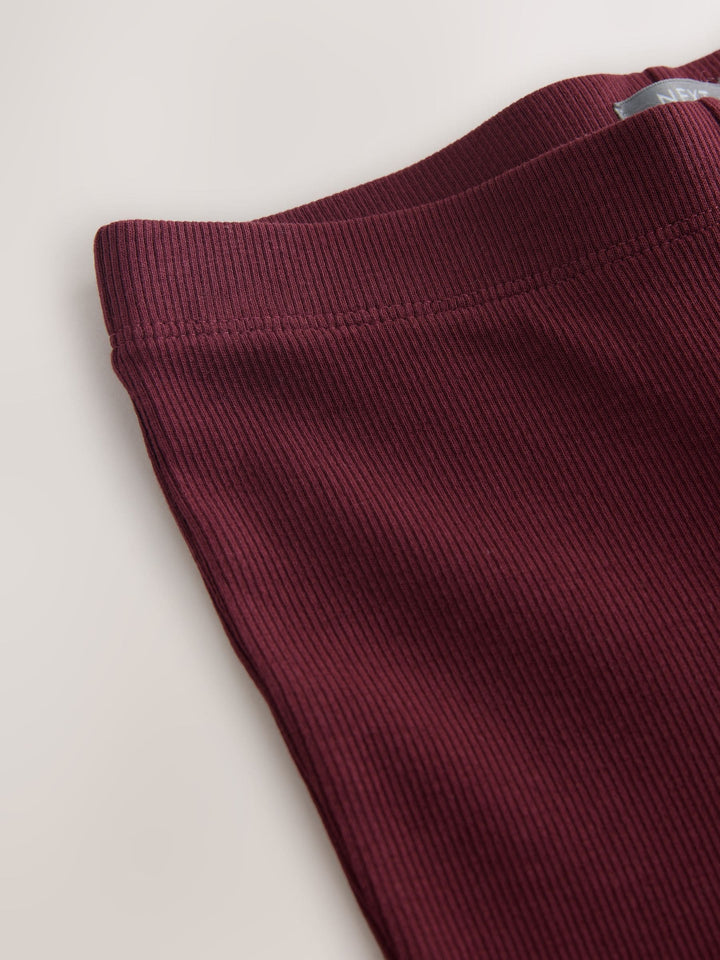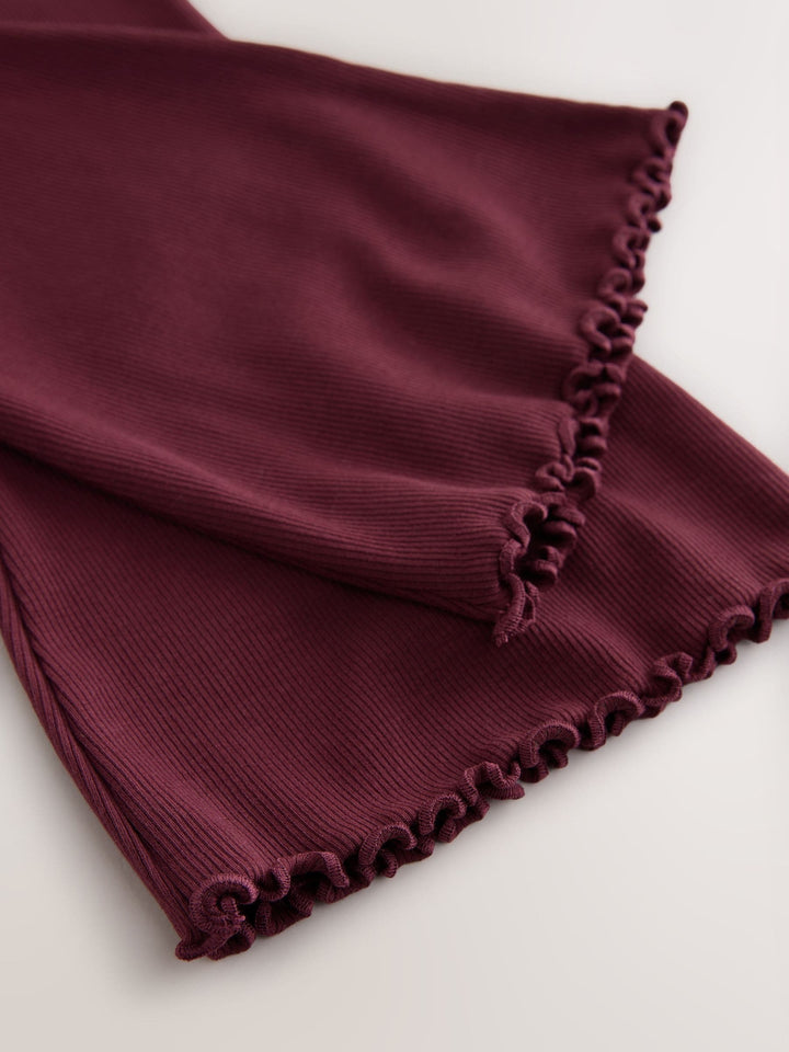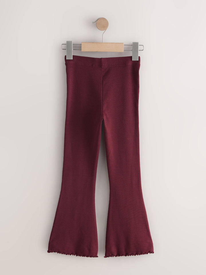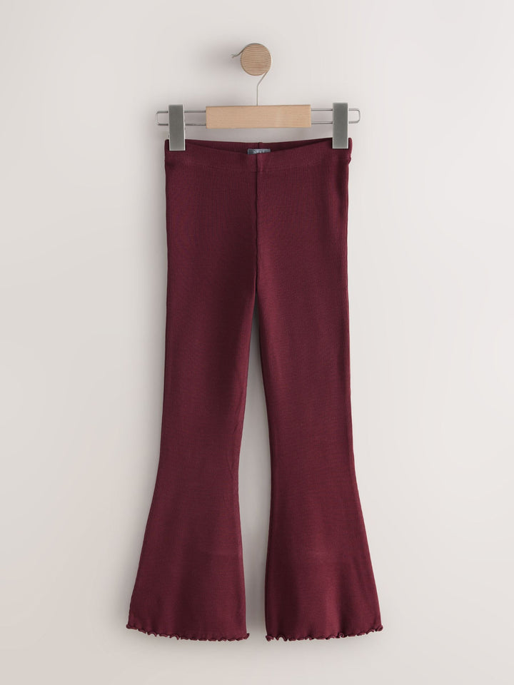 These rib leggings in burgundy red have a stylish flare shape, made from a comfortable 4-way stretch cotton-rich fabric, finished with an elasticated waistband and a frilled trim. Regular fit Flared leg 4-way stretch fabric Elasticated waistband Trim detailing 95% Cotton, 5% Elastane. Country of Origin: Bangladesh