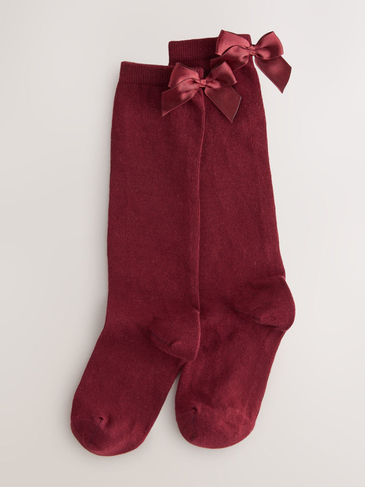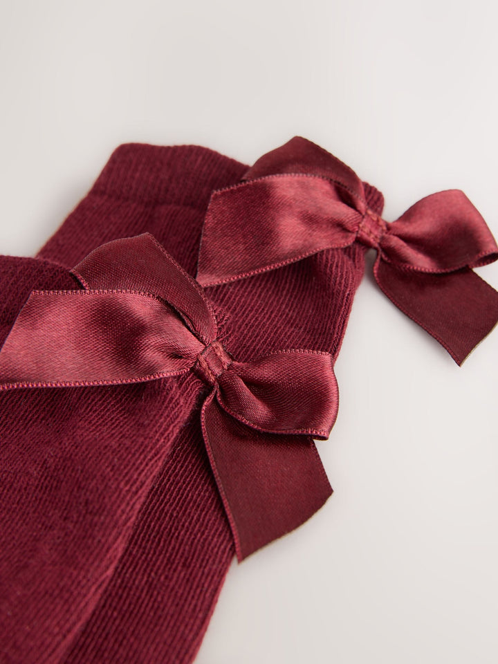 Burgundy Red 2 Pack Cotton Rich Bow Knee High Socks