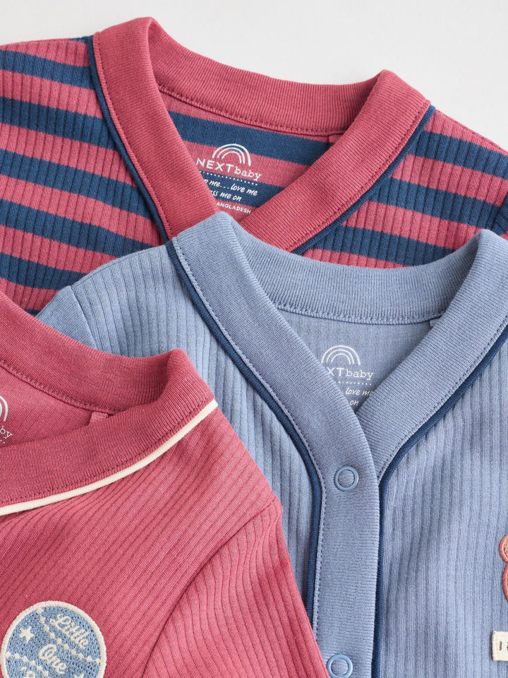 Machine washable. 3 x Sleepsuit 100% Cotton. Country of Origin: Bangladesh Warning: Keep away from fire and flames.