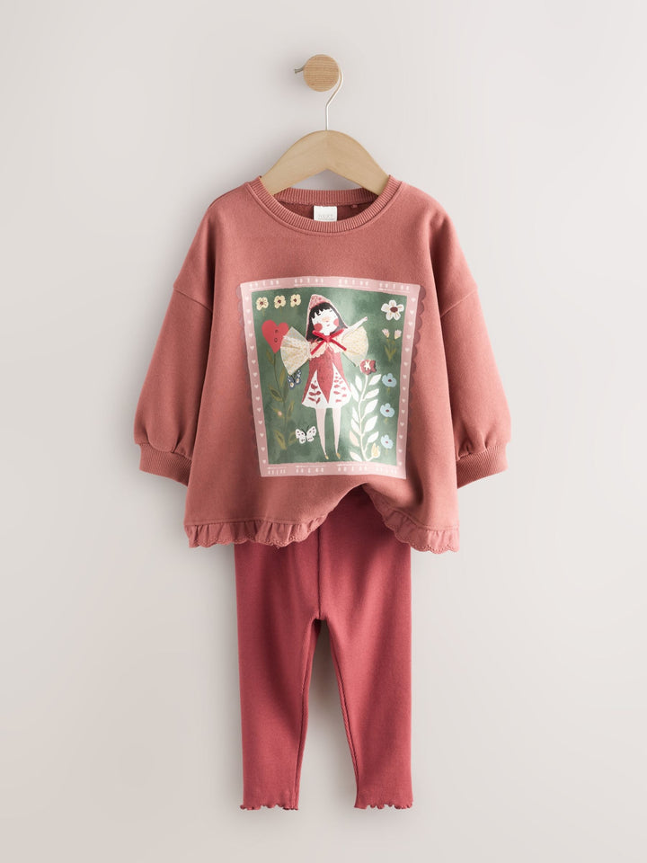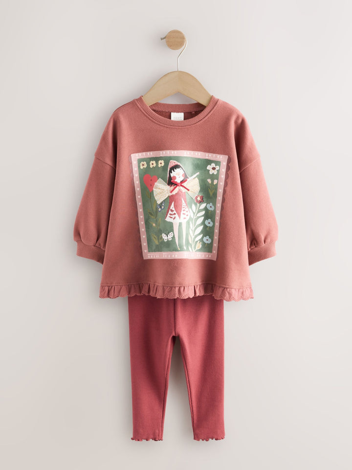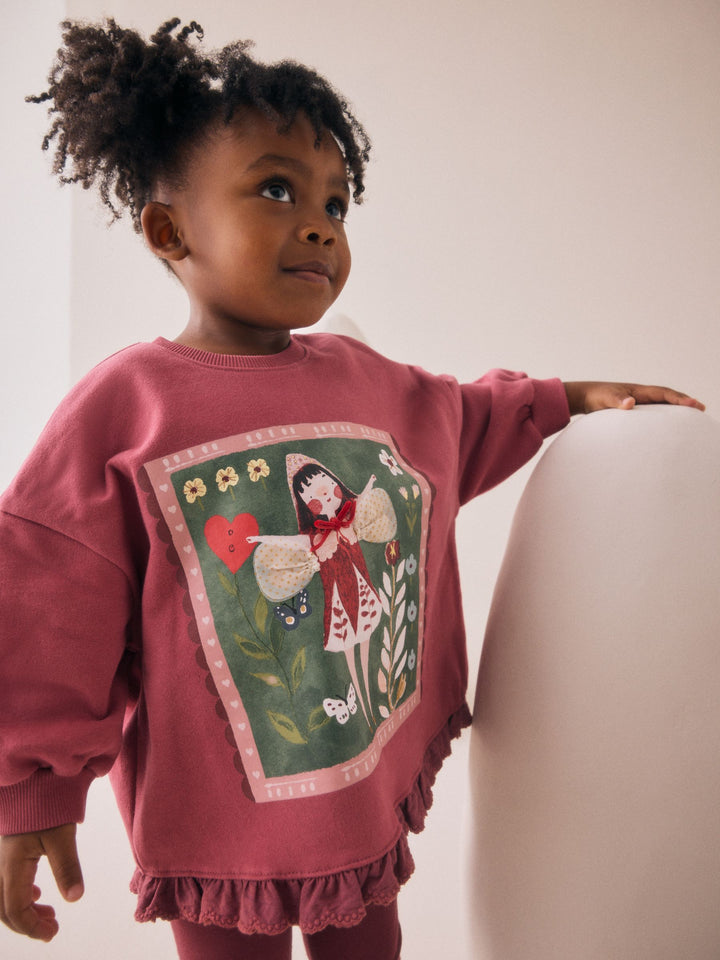Burgundy Red Fairy Frill Hem Sweatshirt & Leggings Set (3mths-7yrs)