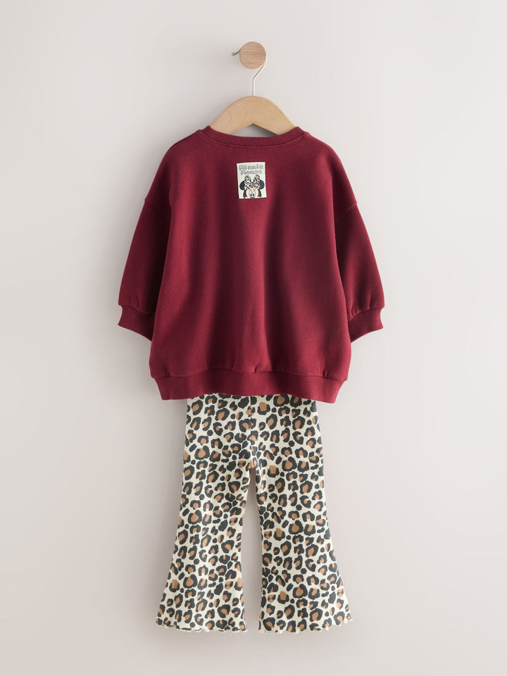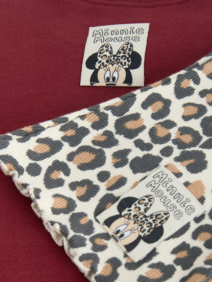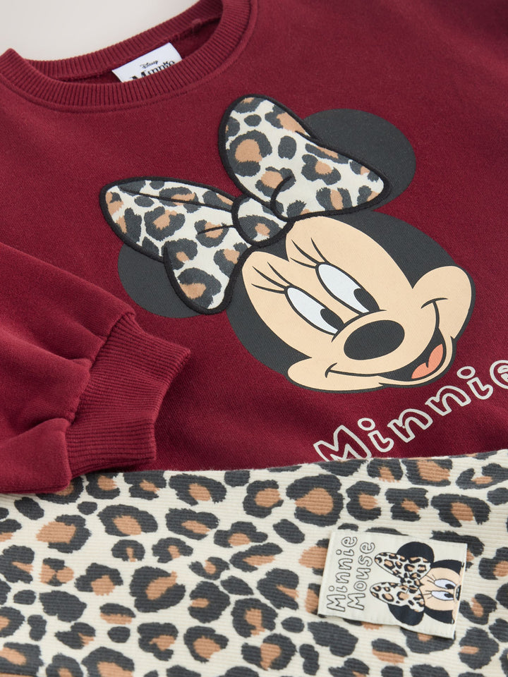 Burgundy Red Leopard Minnie Mouse Sweatshirt and Flare Leggings Set (3mths-7yrs)