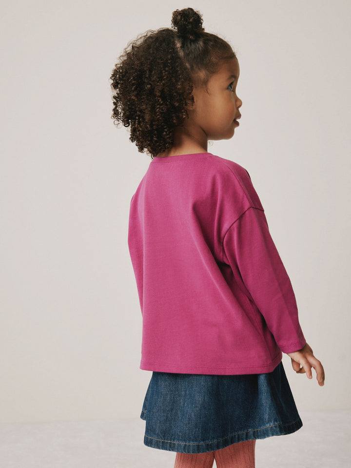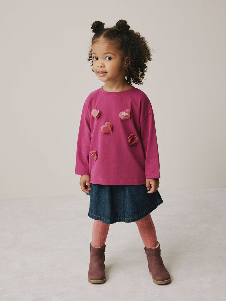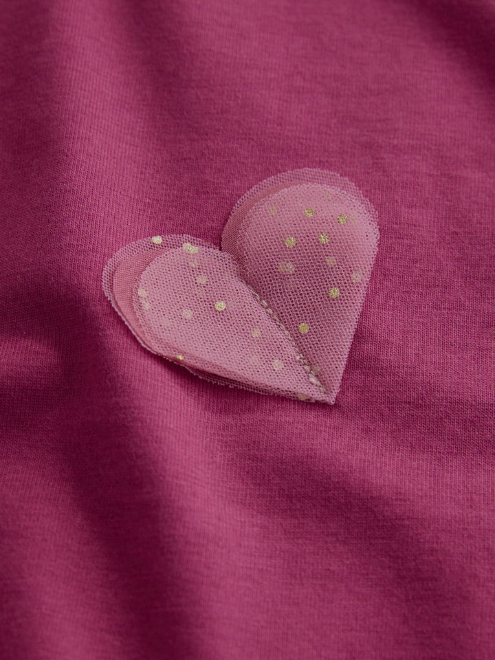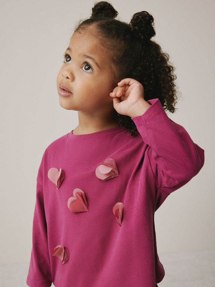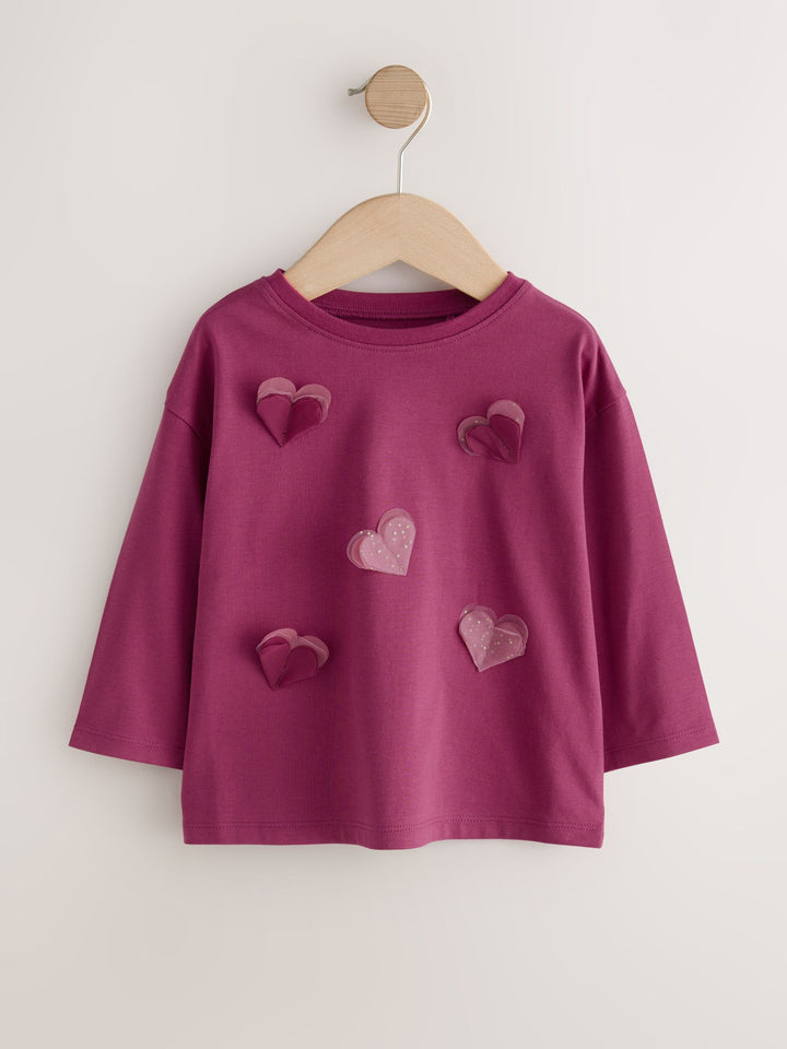 Burgundy Red Long Sleeve Mesh Heart Appliqué Top (3mths-7yrs)