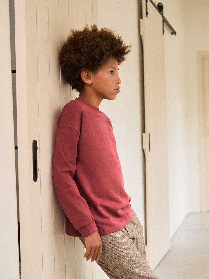 Burgundy Red Relaxed Fit Long Sleeve Heavyweight T-Shirt (3-16yrs)