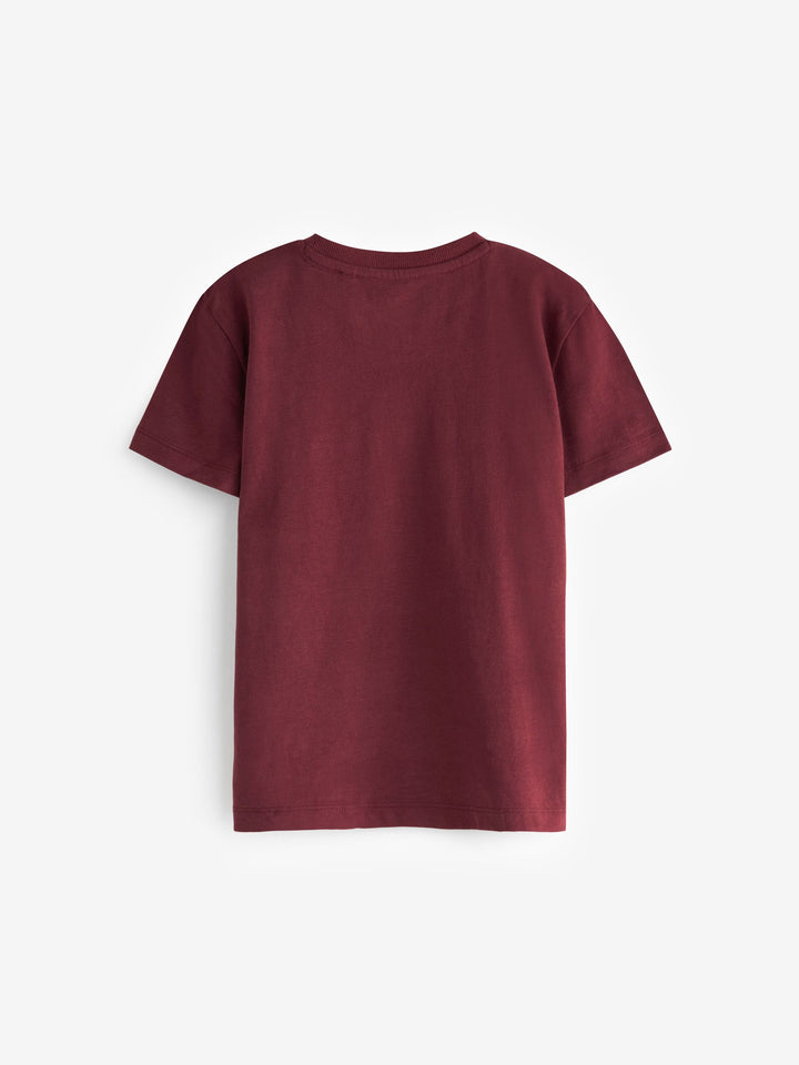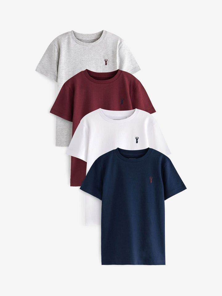 Burgundy Red/White Short Sleeve Stag Embroidered T-Shirts 4 Pack (3-16yrs)