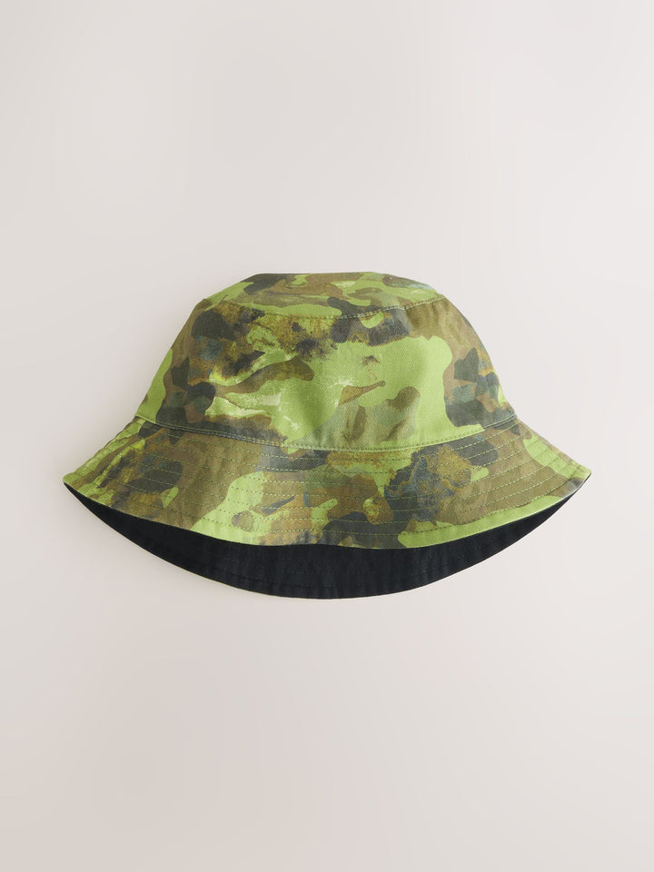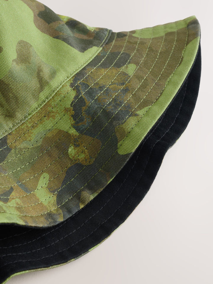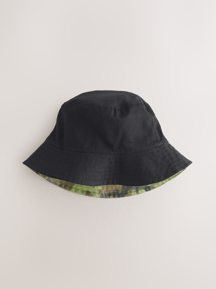 Camouflage/Black 100% Cotton Reversible Bucket Hat (1-16yrs)
