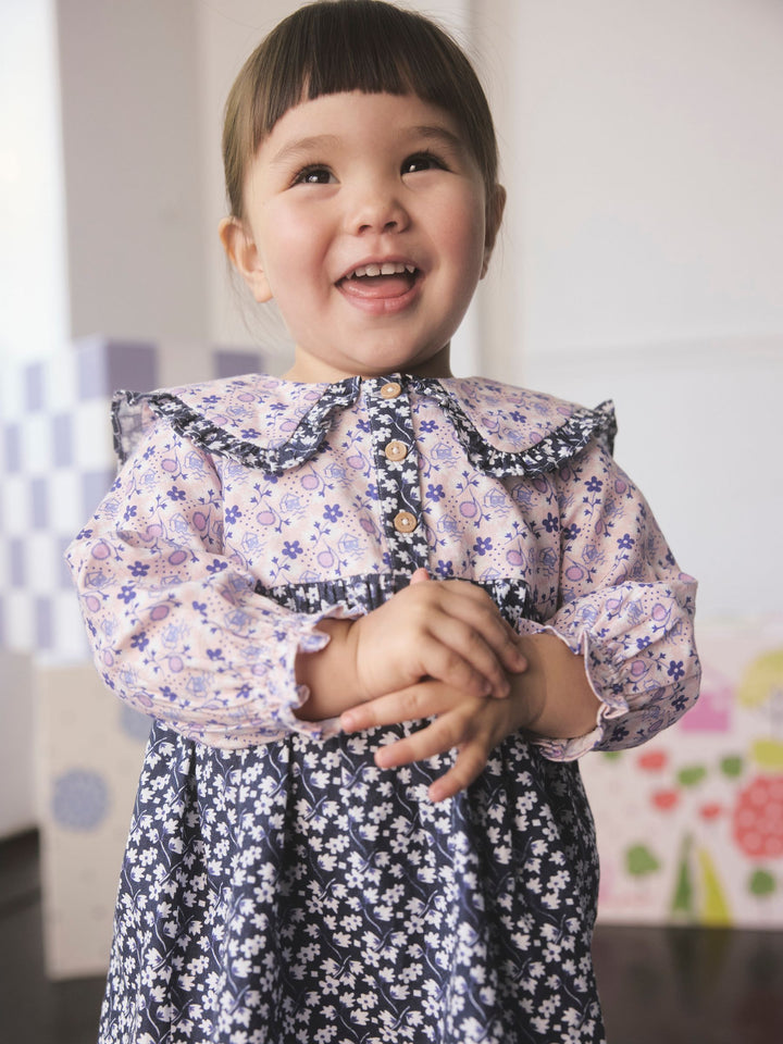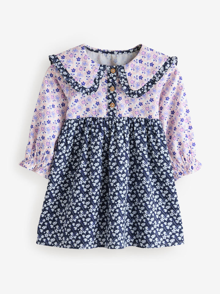 Cath Kidston Multi Navy Ditsy Long Sleeve Collar Dress (3mths-8yrs)