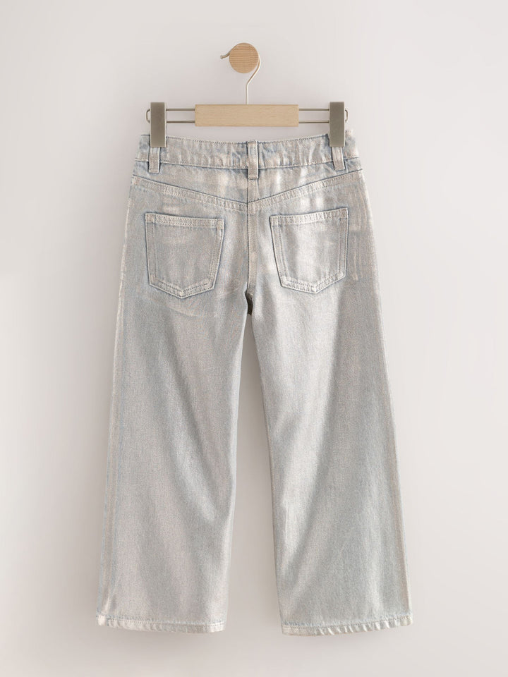 Make a bold fashion statement with these trendy metallic coated wide leg jeans, perfect for day-to-night wear or parties. The striking metallic finish and modern wide leg silhouette ensures she stands out, while the comfortable construction keeps them ideal for all-day style. Wide leg jeans Features a bold metallic coated finish Ideal for day to night wear Handy pockets 100% Cotton. Country of Origin: Bangladesh