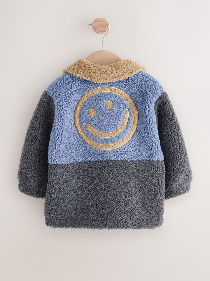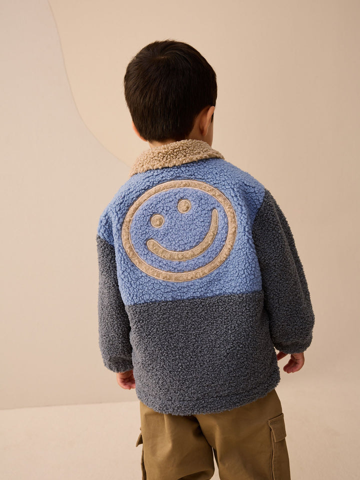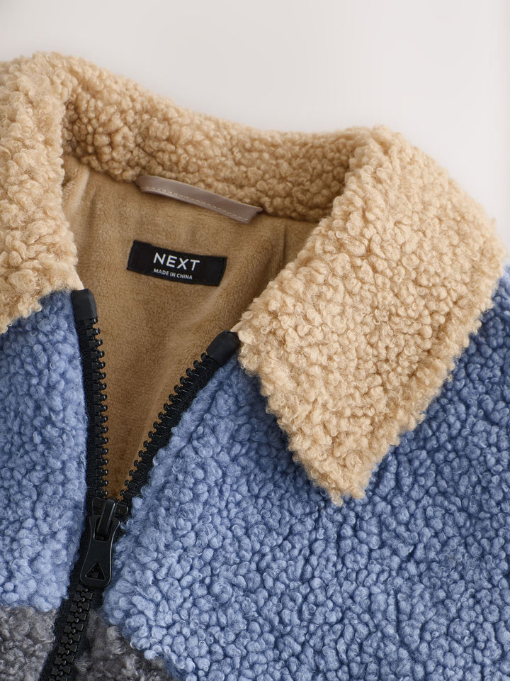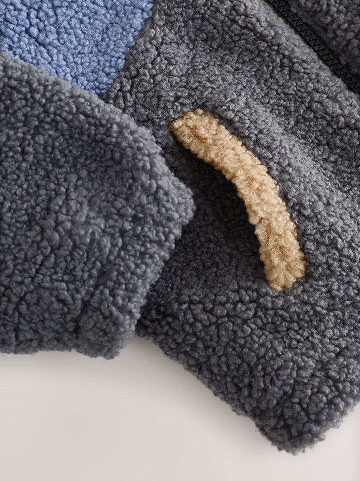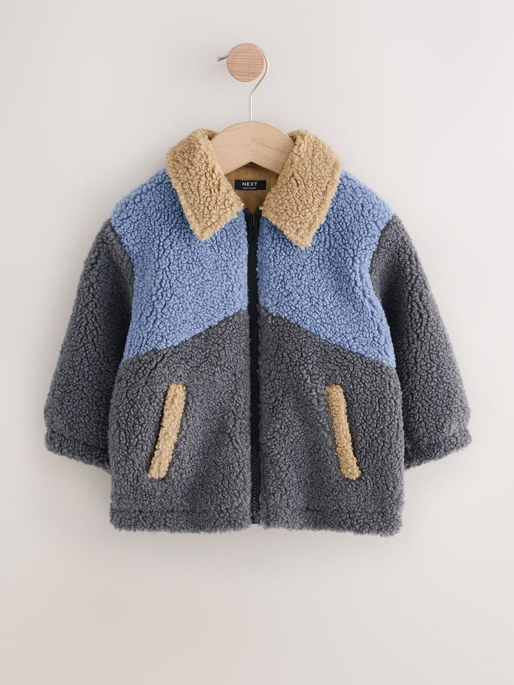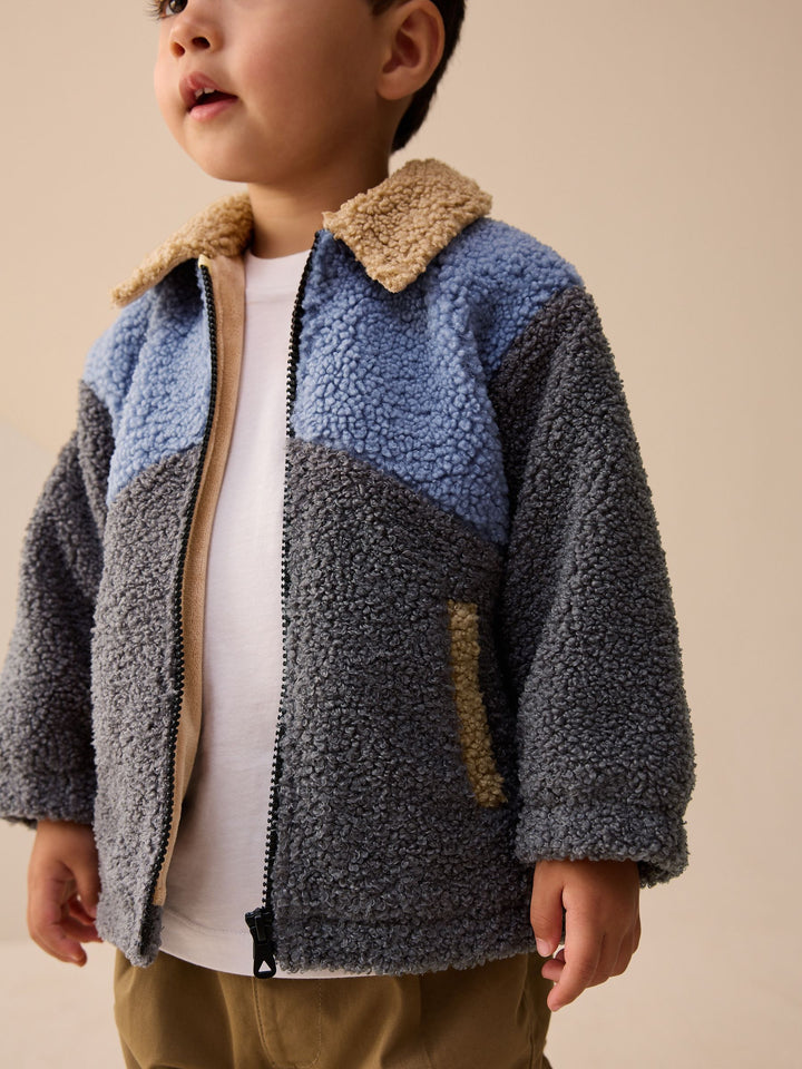 Charcoal/Blue/Tan Colorblock Borg Fleece Shacket (3mths-7yrs)