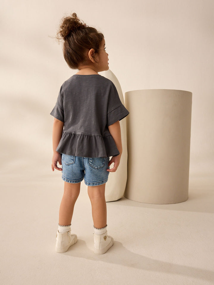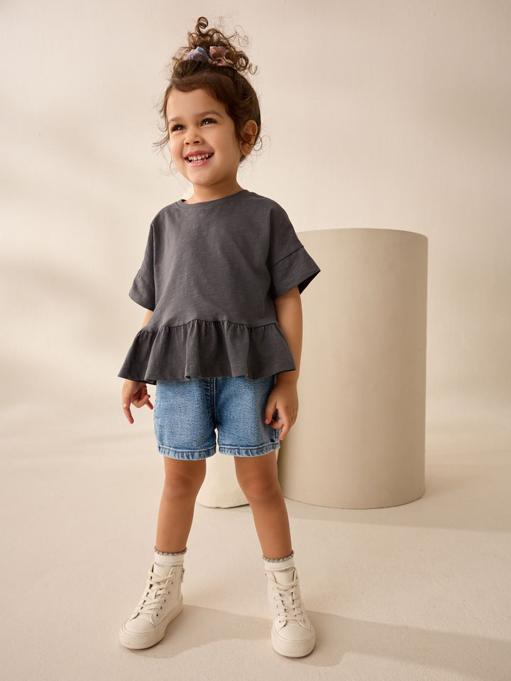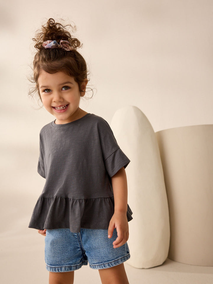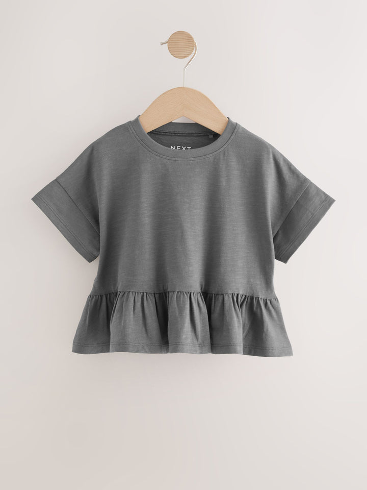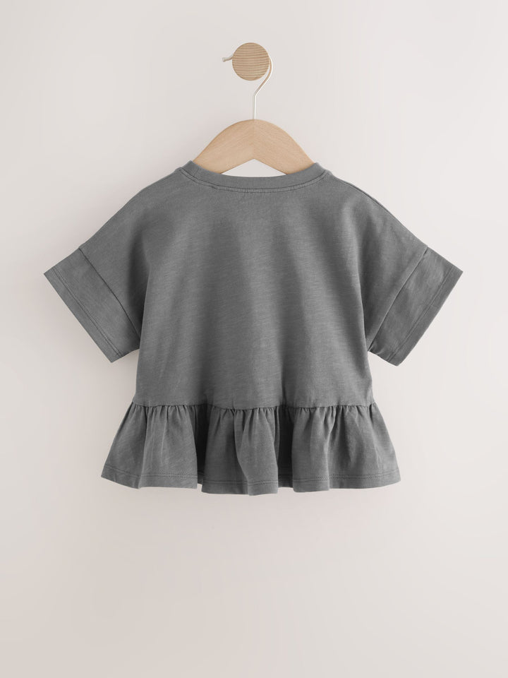 Charcoal Grey 100% Cotton Short Sleeve Peplum T-Shirt (3mths-7yrs)