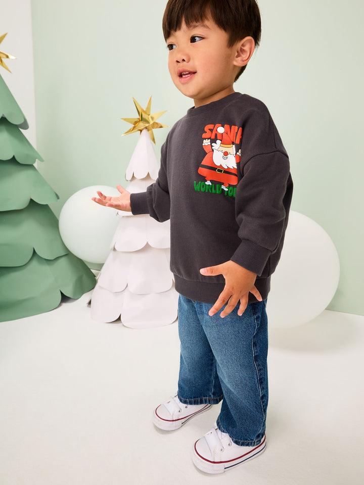 Charcoal Grey Christmas Crew Neck Jersey Sweatshirt (3mths-7yrs)