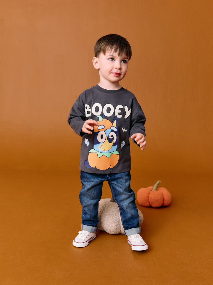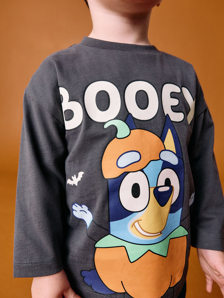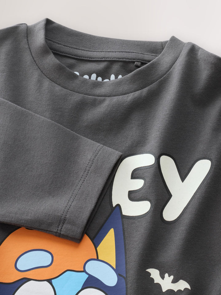 Charcoal Grey Glow in the Dark Bluey Halloween Long Sleeve T-Shirt (3mths-8yrs)