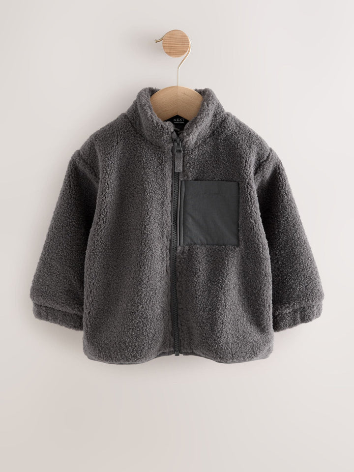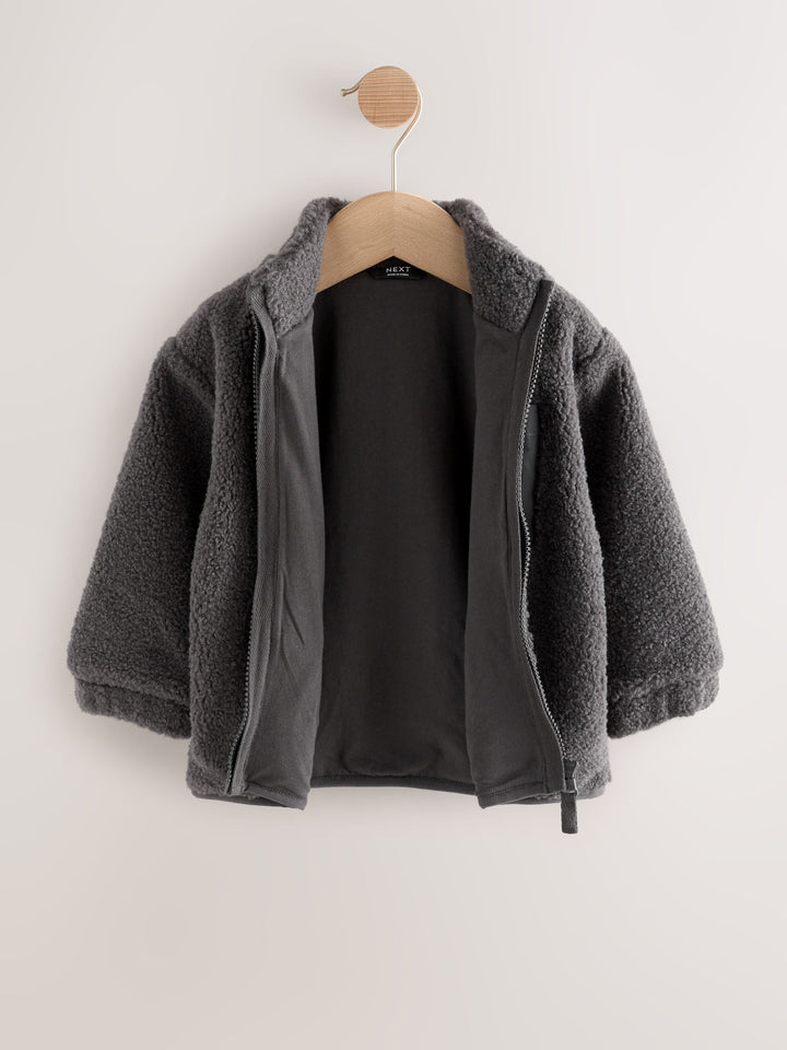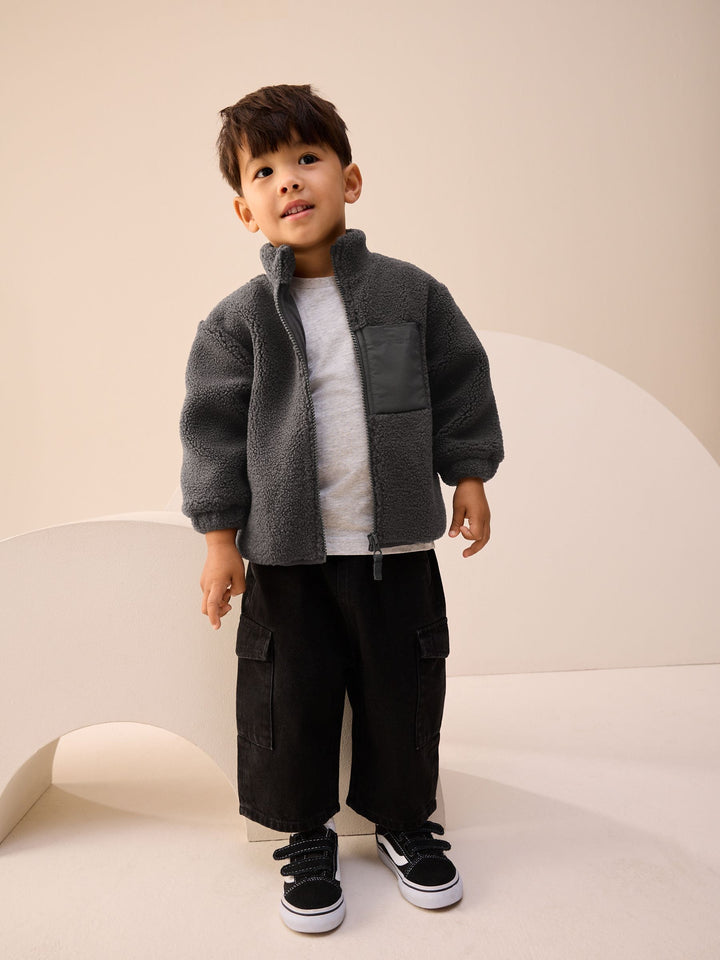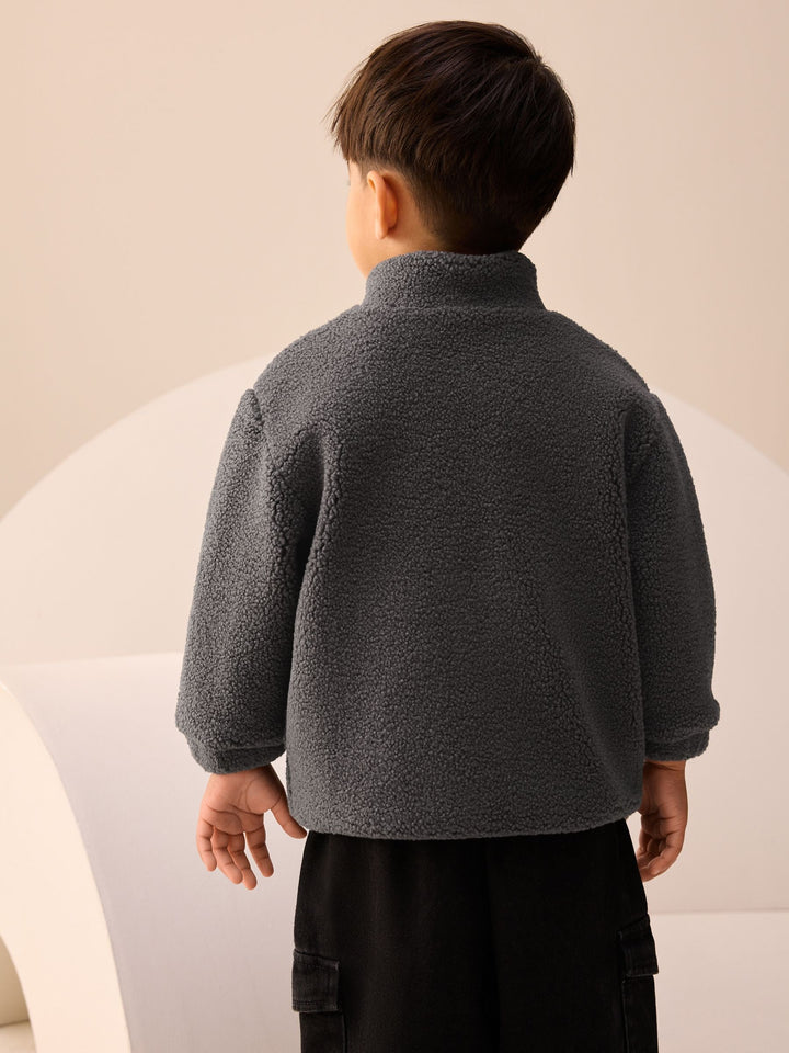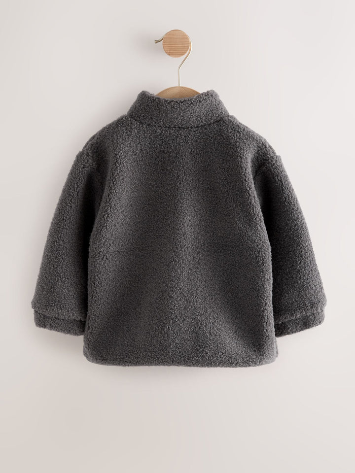 Charcoal Grey Plain Funnel Neck Fleece Zip Through Fleece (3mths-7yrs)