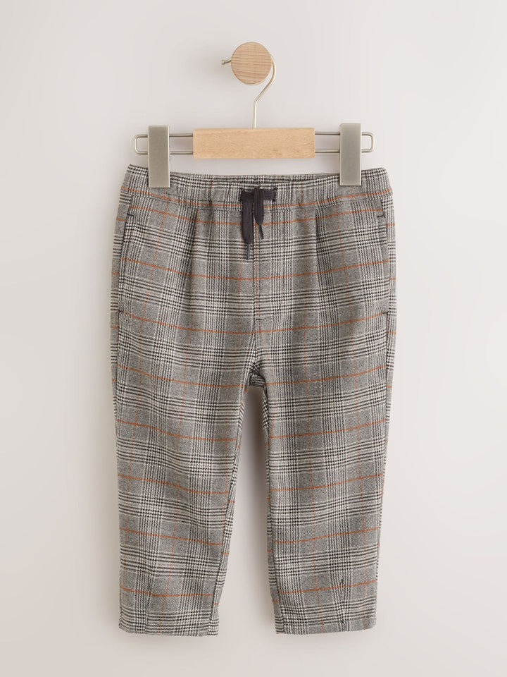 Stay comfortable and smart in these trousers, a versatile option for their wardrobe. The pull-on waist and soft fabric provide a comfortable fit for all-day wear. With a relaxed leg, they're a perfect choice for a day at school or a smart family get-together. Pull-on waist Relaxed leg Functional pockets Drawstring detail 65% Polyester, 33% Viscose, 2% Elastane. Country of Origin: Cambodia