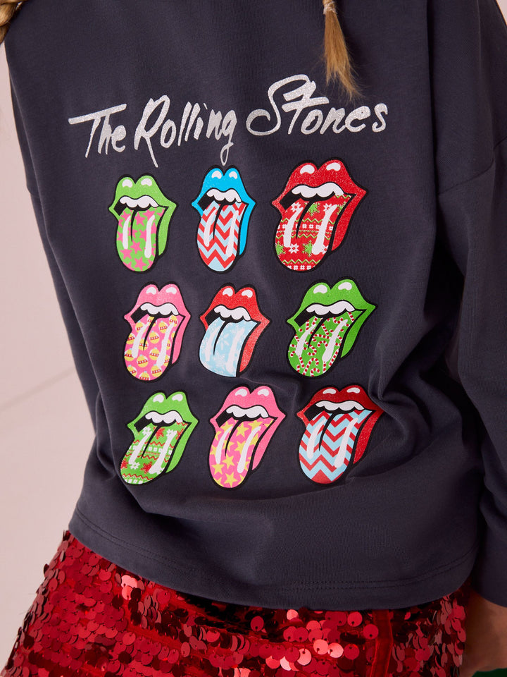 Charcoal Grey Rolling Stones Christmas Long Sleeve 100% Cotton Top (3-16yrs)