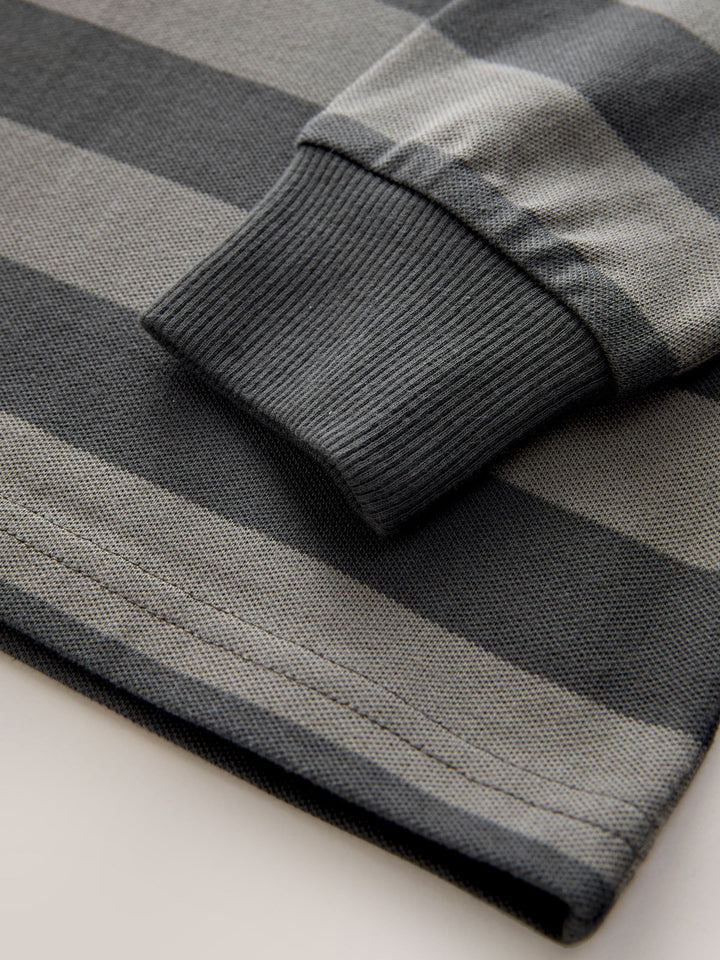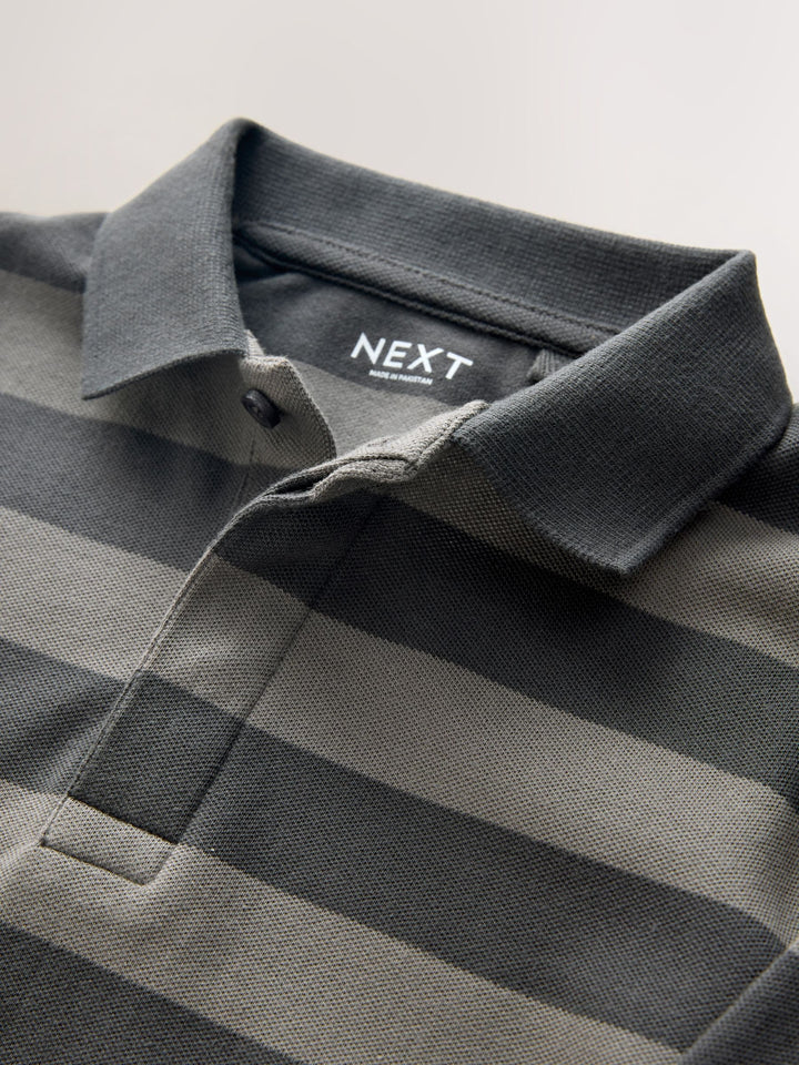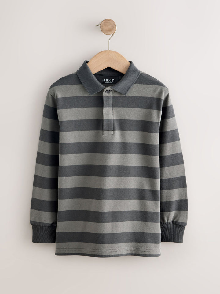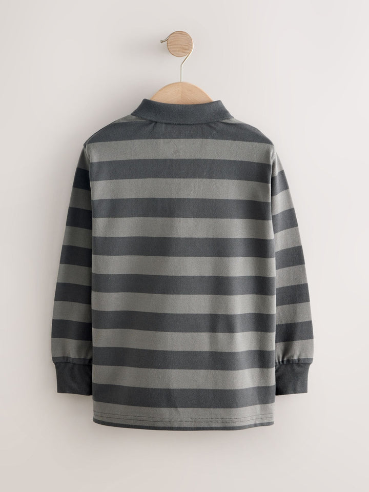 Charcoal/Grey Stripe Long Sleeve Polo Shirt (3-16yrs)