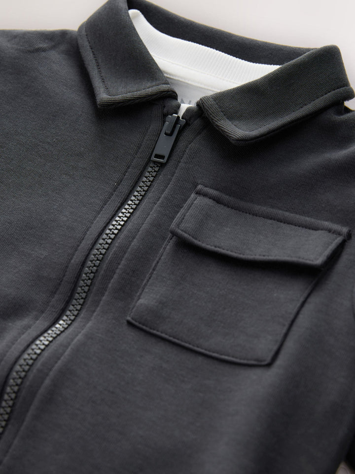 Give him an instantly polished smart casual look with this Shirt, T-Shirt And Joggers 3 Piece Set. This complete outfit includes a soft, collared overshirt that fastens easily with a popper front, featuring two stylish patch pockets to the chest. The jacket is perfectly layered over a T-shirt and paired with comfortable, matching joggers that have a drawstring waist. Ready to wear right off the hanger, this set is a simple way to achieve a cool, coordinated style. 3 piece set Popper front shirt Long sleeve t-shirt Matching joggers Machine washable. Jacket and Jogger 75% Cotton, 25% Recycled polyester. T-shirt 100% Cotton. Country of Origin: Pakistan