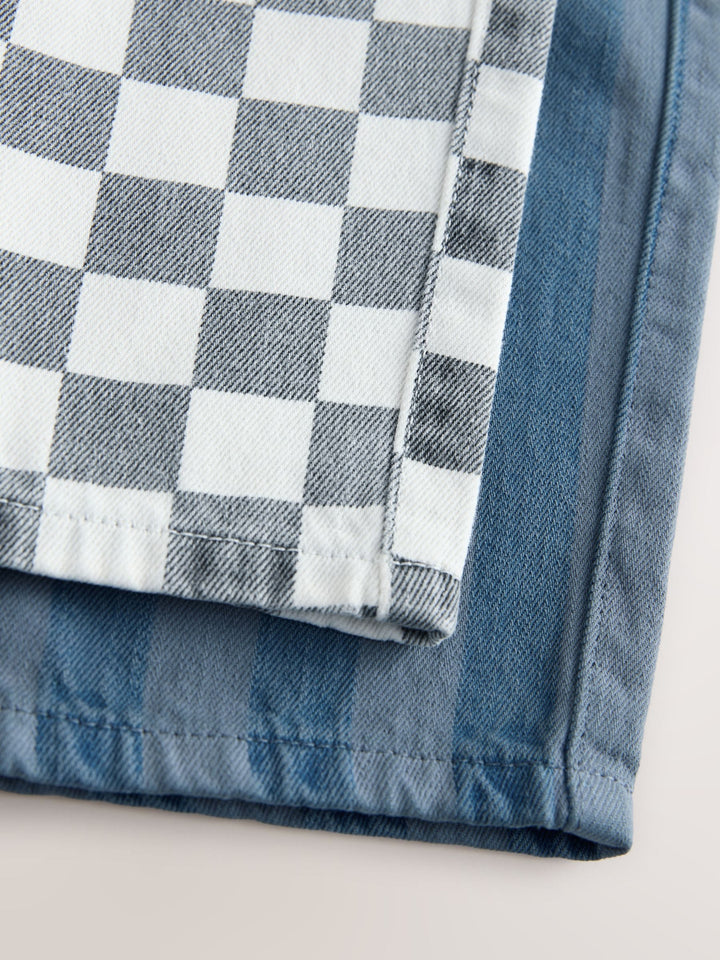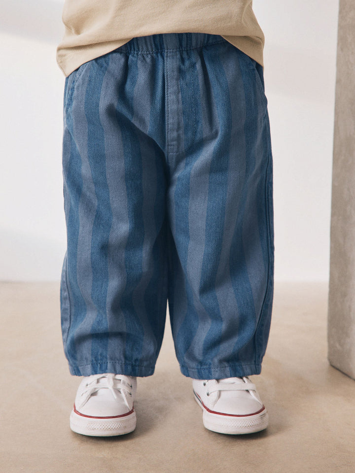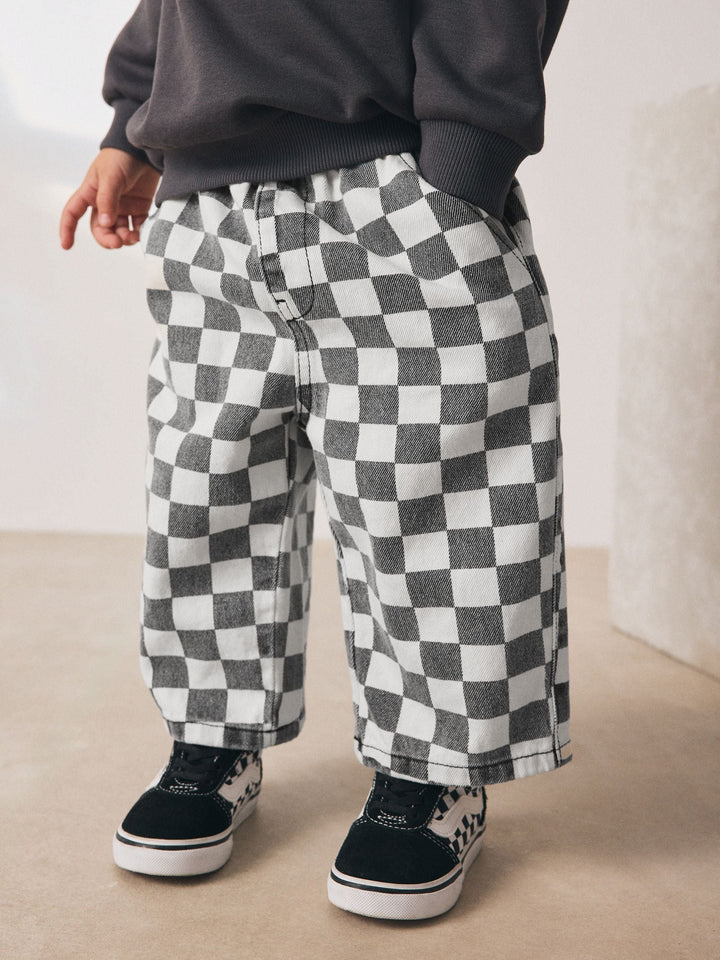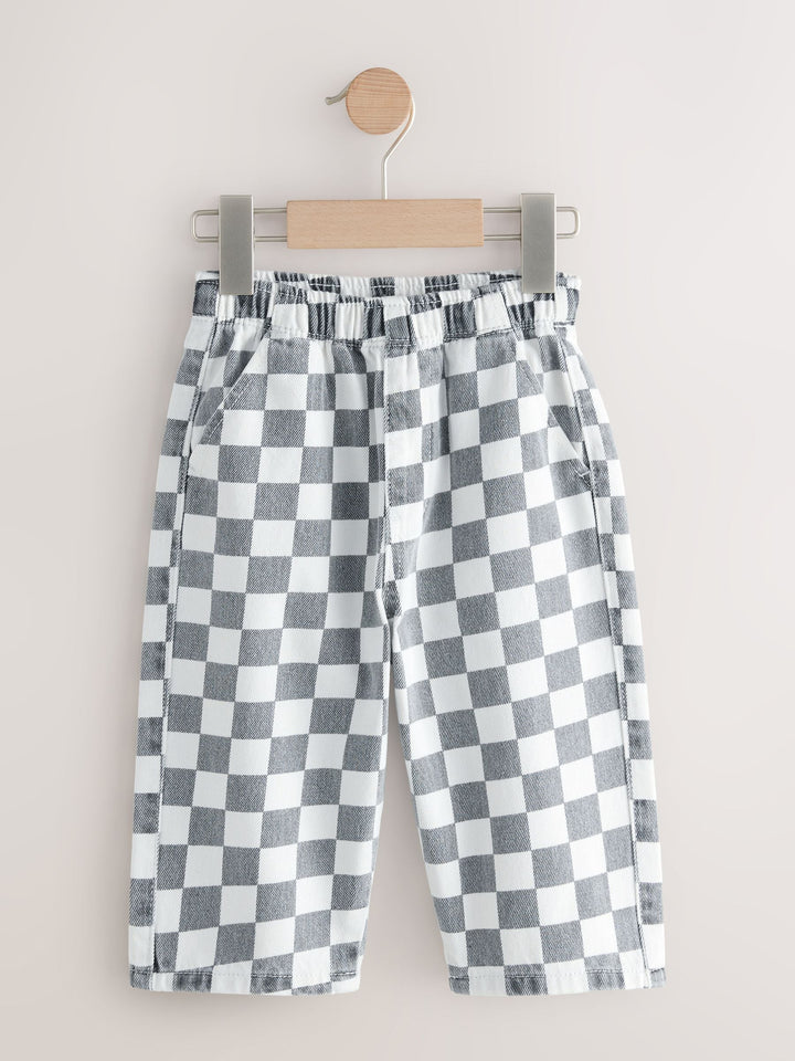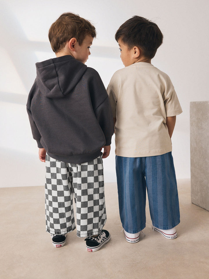 Checkerboard/Blue Stripe Pull On Wide Trousers 2 Pack (3mths-7yrs)