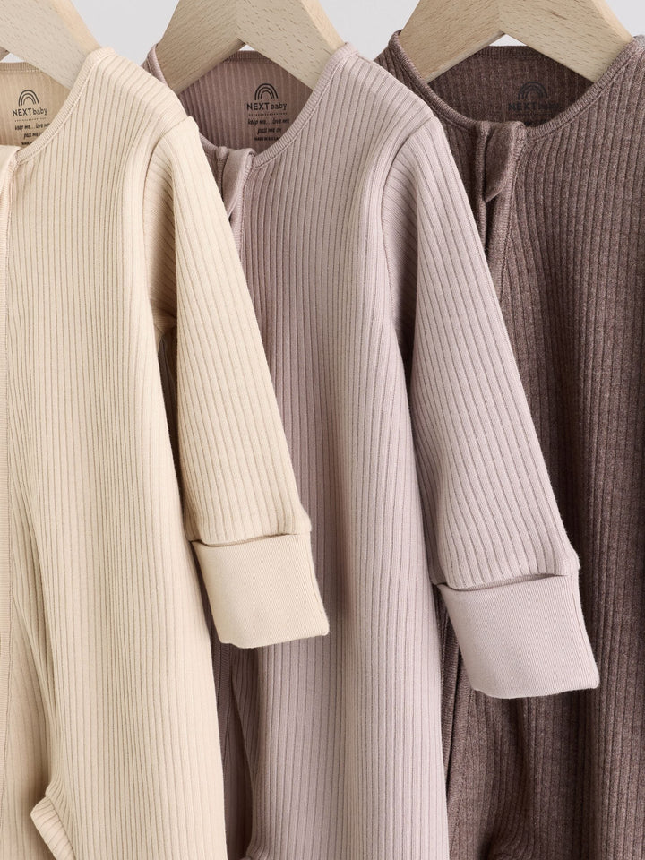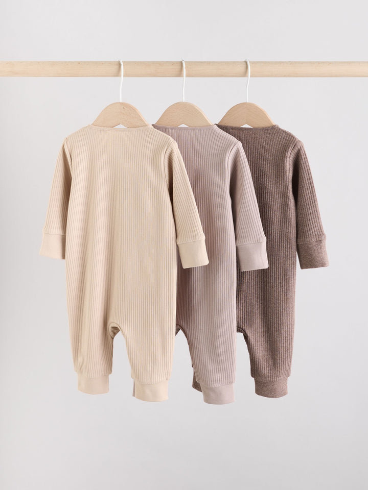Chocolate Brown 3 Pack Baby Sleepsuits (0mths-3yrs)