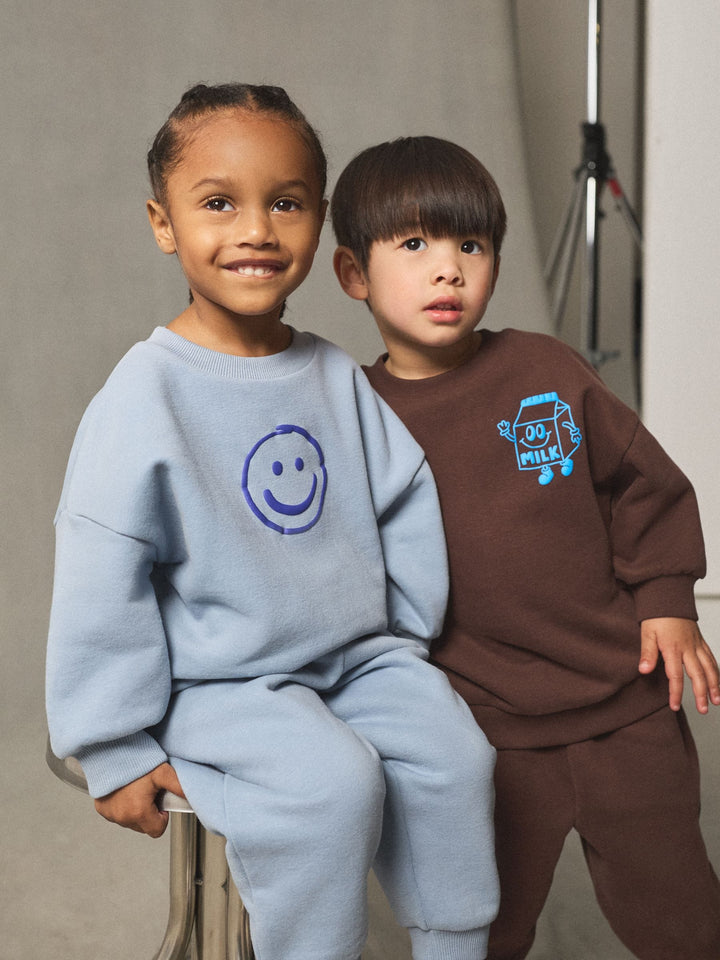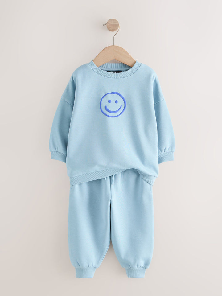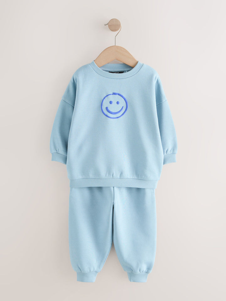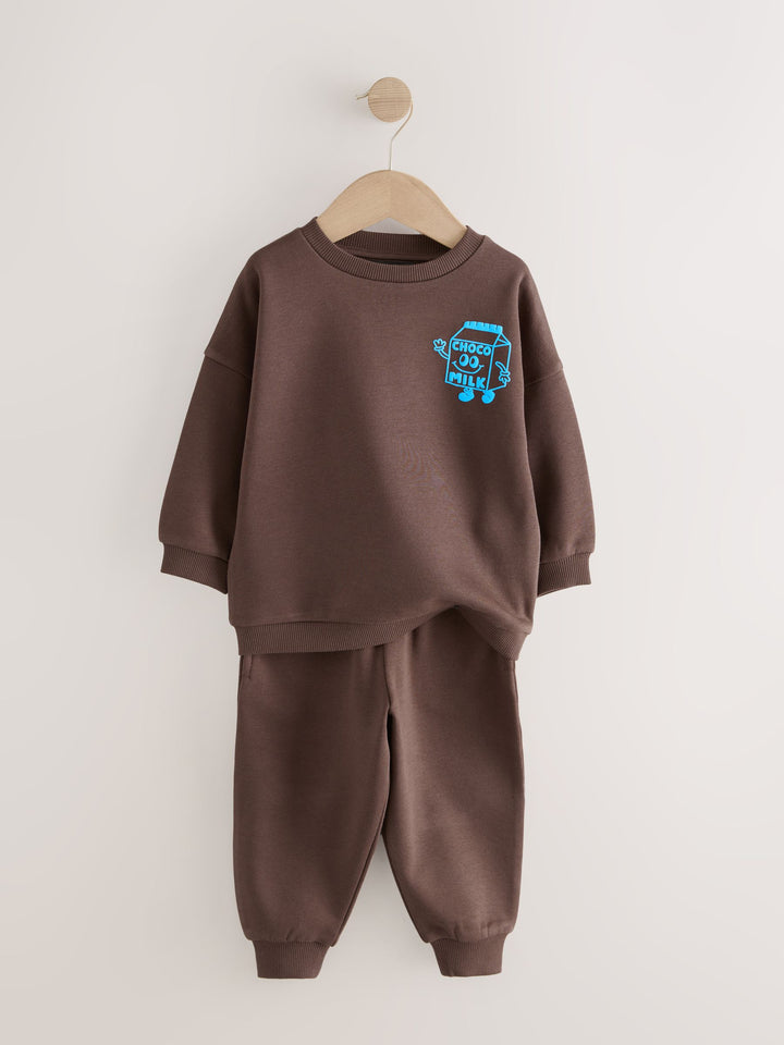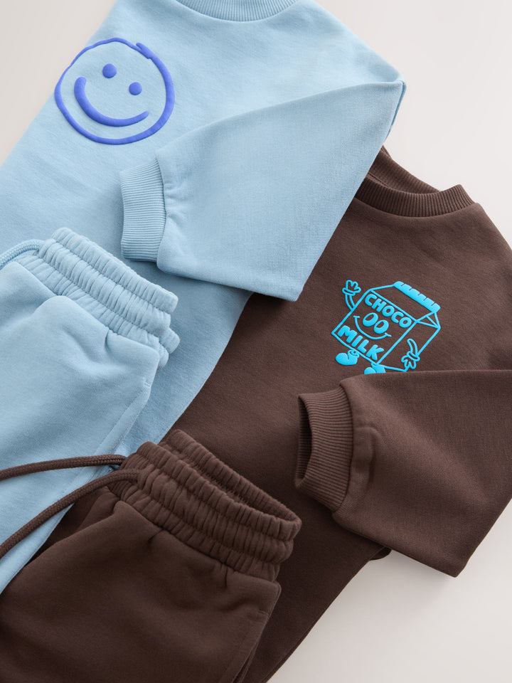 Chocolate Brown and Blue 2 Pack Printed Crew Neck Sweat Top & Jogger Sets (3mths-7yrs)