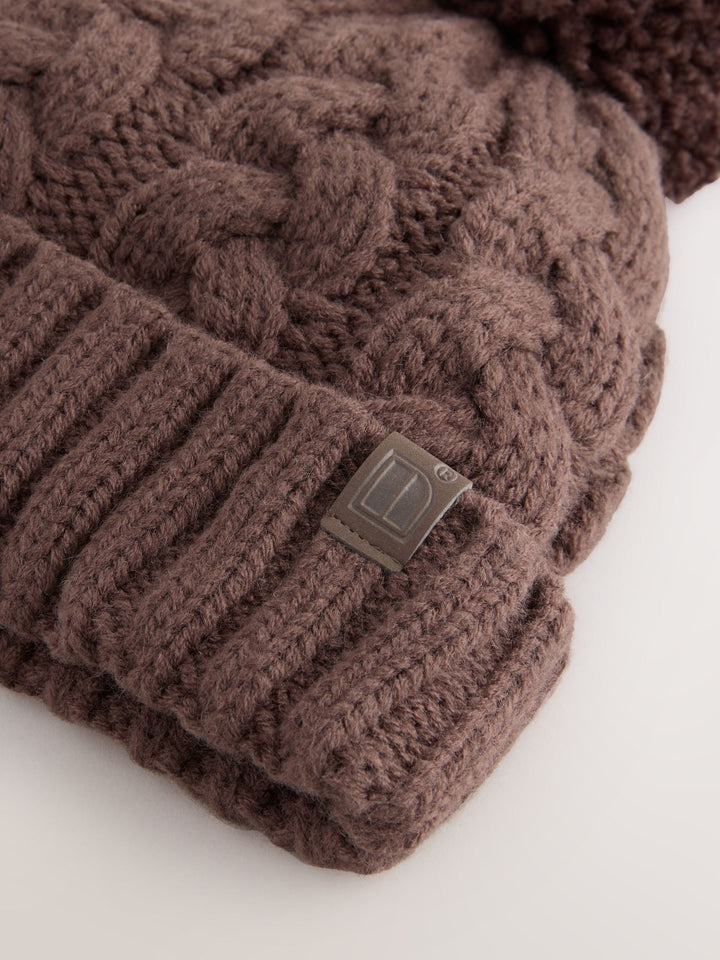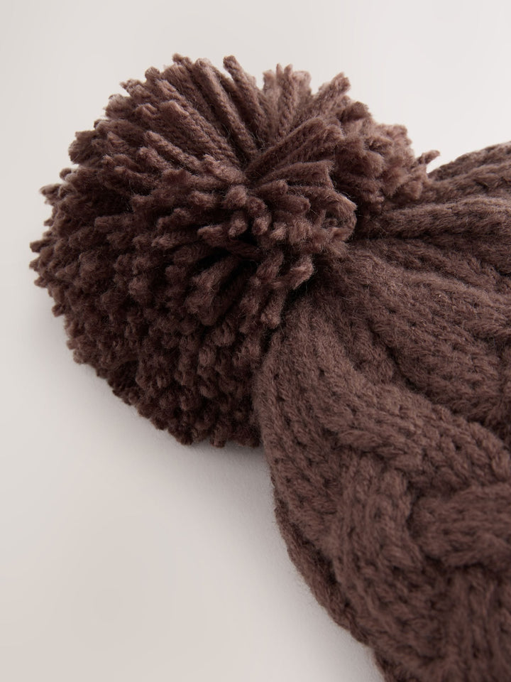 Chocolate Brown Cable Knit Pom Hat (1-16yrs)