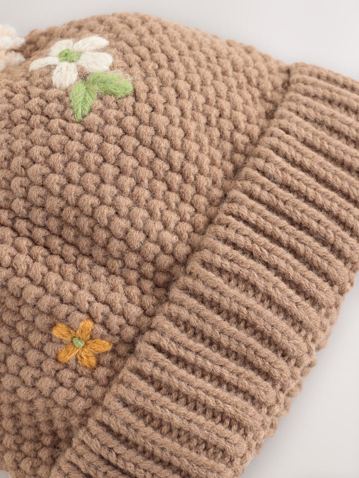 Chocolate Brown Embroidered Beanie (1-13yrs)