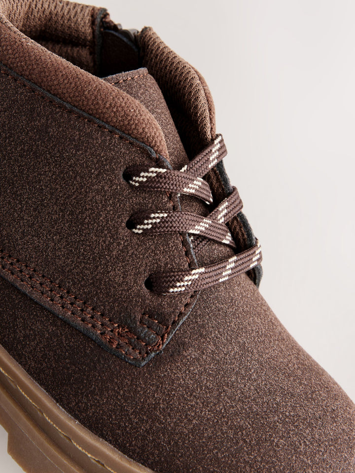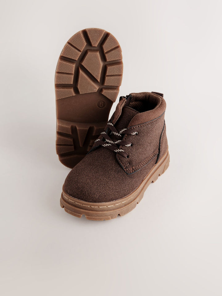 Equip him for adventure with these rugged chocolate brown lace-up boots, perfect for casual wear and outdoor exploration. Designed with a sturdy chunky sole for great grip and a handy side zip fastening for quick and easy on-and-off, these boots combine durable style with practicality. Rugged lace-up boots Features a convenient side zip fastening Designed with a durable chunky sole Ideal for comfortable casual wear Sturdy outdoor style Upper - Other Materials, Textile, Lining & Sock - Textile, Sole - Other Materials. Country of Origin: China