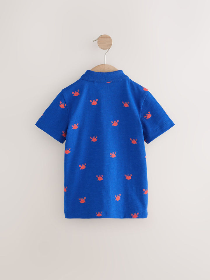 The classic polo shirt, re-imagined. Our cobalt blue all-over-print polo shirt features sweet crab detail throughout. Crafted from breathable, 100% cotton in a timeless polo shirt shape. Polo shirt Crab print 100% cotton Machine washable. 100% Cotton. Country of Origin: Bangladesh
