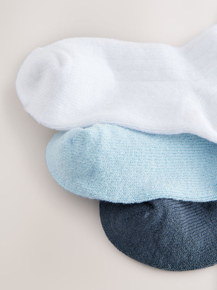 Keep her warm and wonderful with our 3 pack of blue knee high socks. In a cotton rich blend, these soft socks feature a ribbed texture and are free from harmful chemicals and dyes. Pack of 3 Cotton rich Knee high socks Machine washable. 3 x Socks 78% Cotton, 20% Nylon, 2% Elastane. Country of Origin: Bangladesh Warning: Keep away from fire and flames.