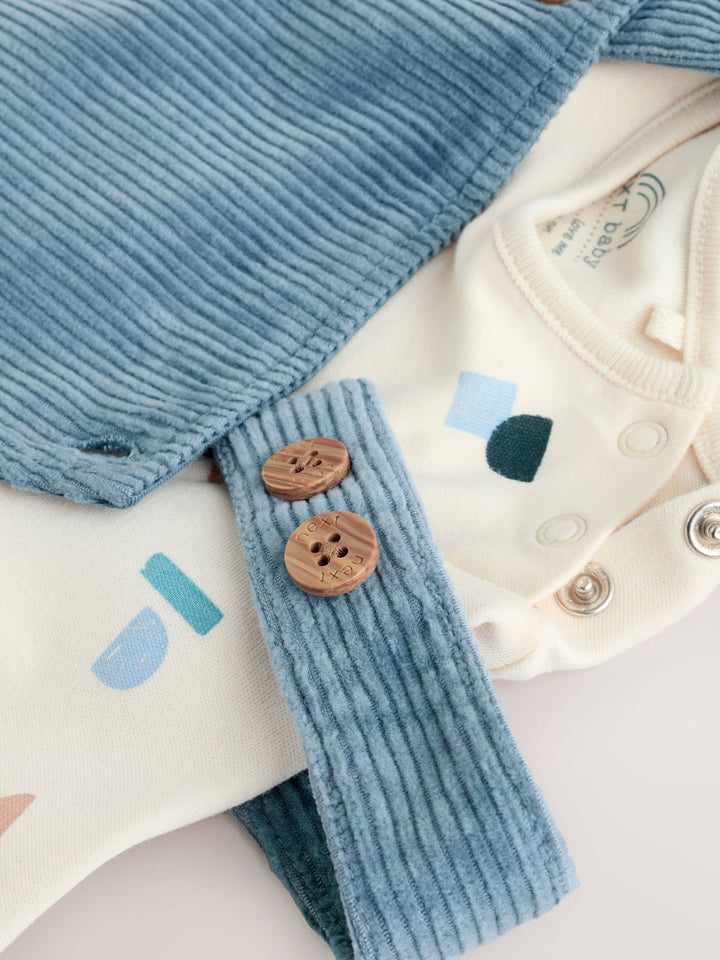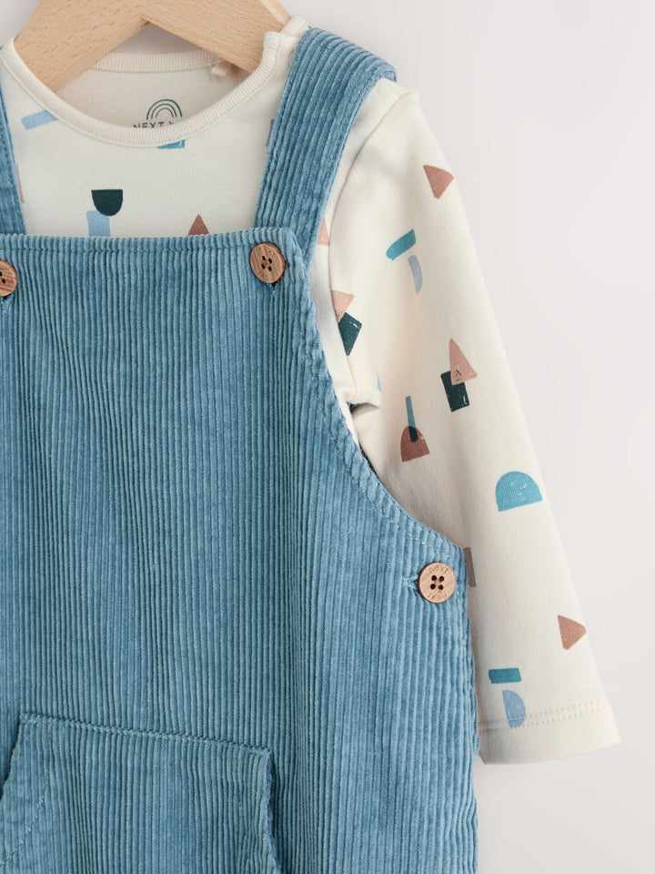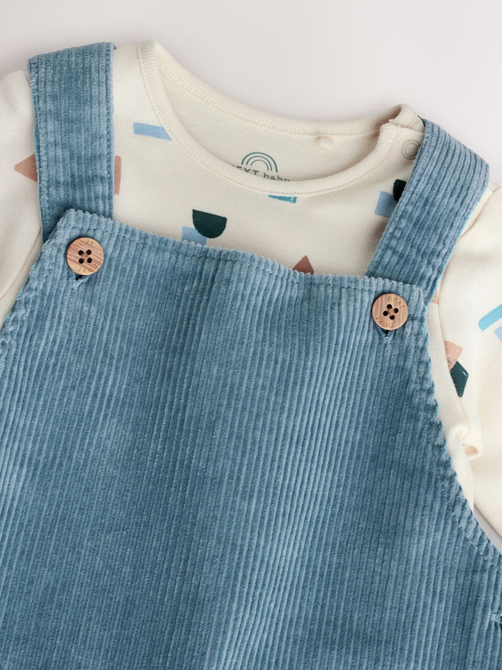Mid Blue Cord Dungarees and Bodysuit Baby Set immediate