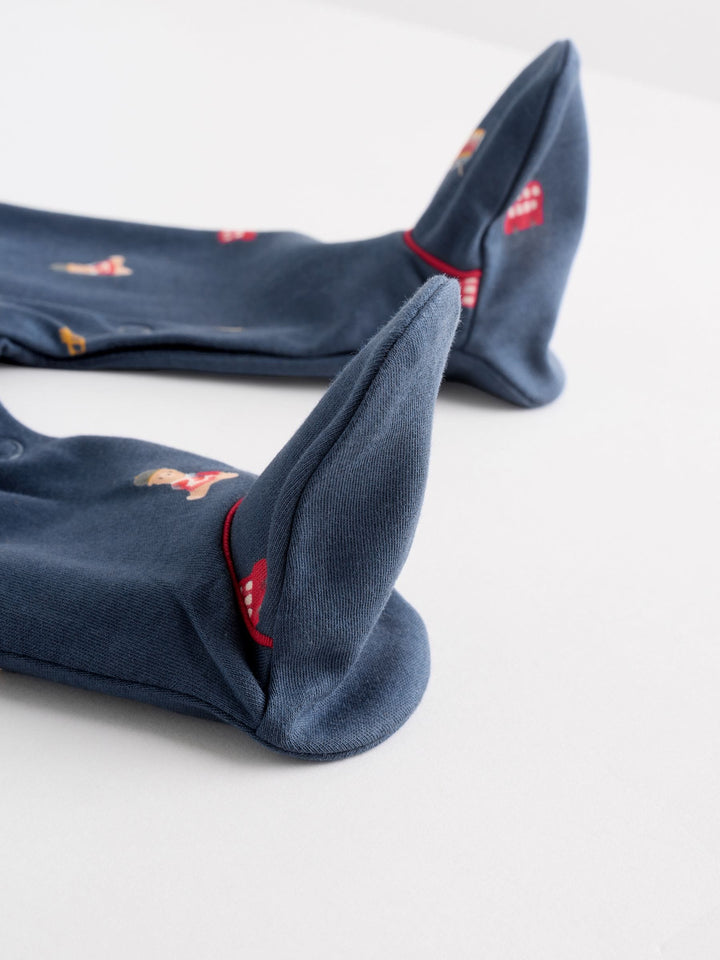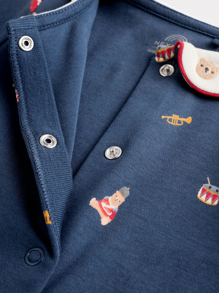 This super-soft three-pack of sleepsuits features charming prints and a bold stripe design. Each one has turn-back scratch mitts and anti-slip soles to keep them cosy and safe as they play and snooze. Popper back fastening Inner lined feet 3 pack Machine washable. 3 x Sleepsuit 100% Cotton. Country of Origin: India Warning: Keep away from fire and flames.