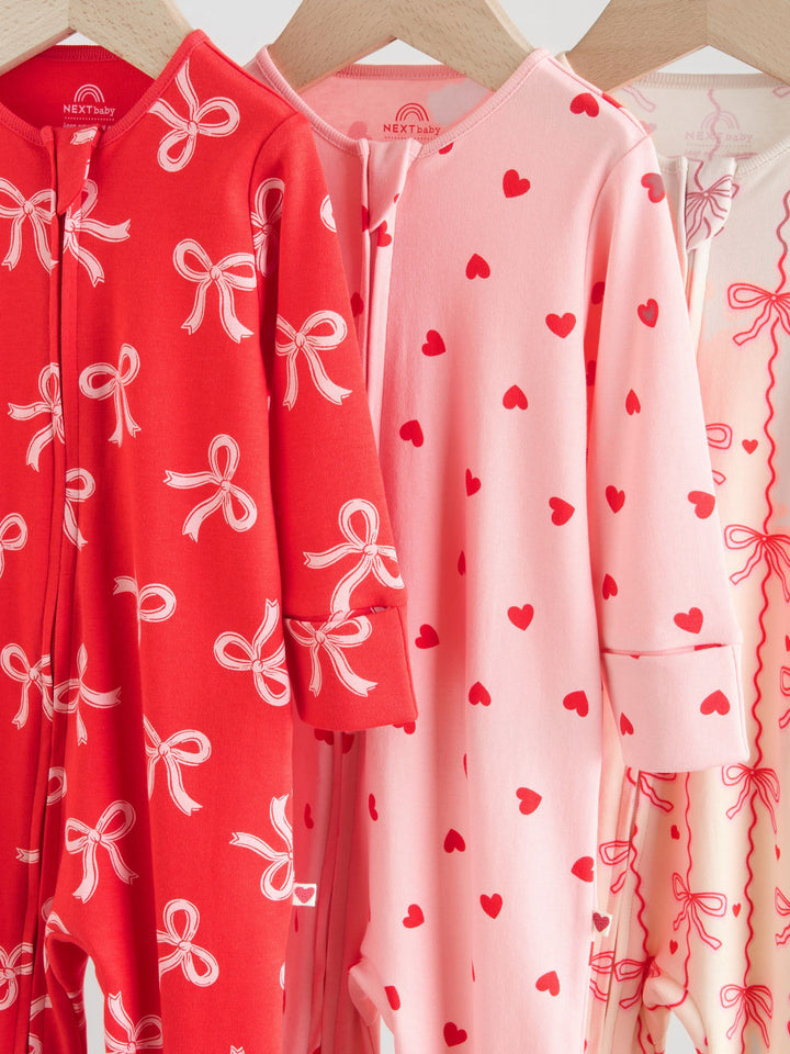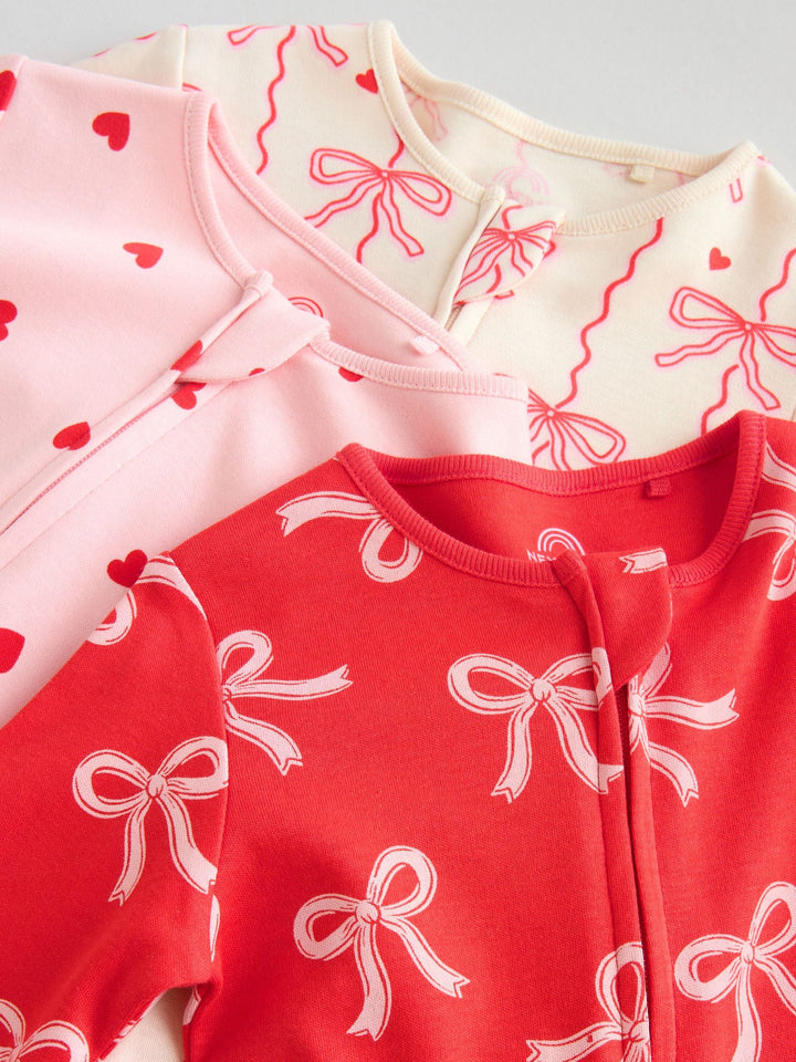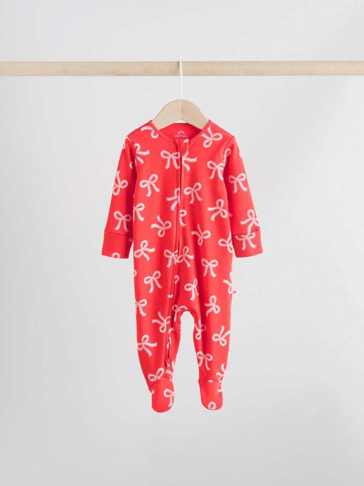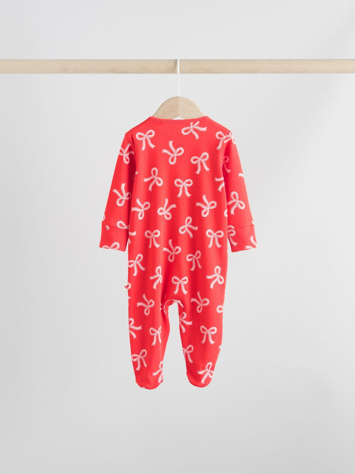 Red Bow Two Way Zip Baby Sleepsuits 3 Pack immediate