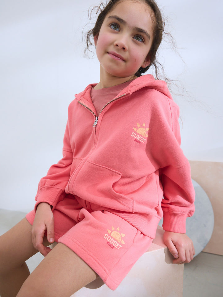These comfortable cotton shorts are a must-have for her summer wardrobe, in a bright pink with a comfortable elasticated waistband, finished with an adjustable drawstring and side pockets. Matching hoodie sold separately. 100% cotton Elasticated waistband Side pockets Machine washable. 100% Cotton. Country of Origin: Pakistan