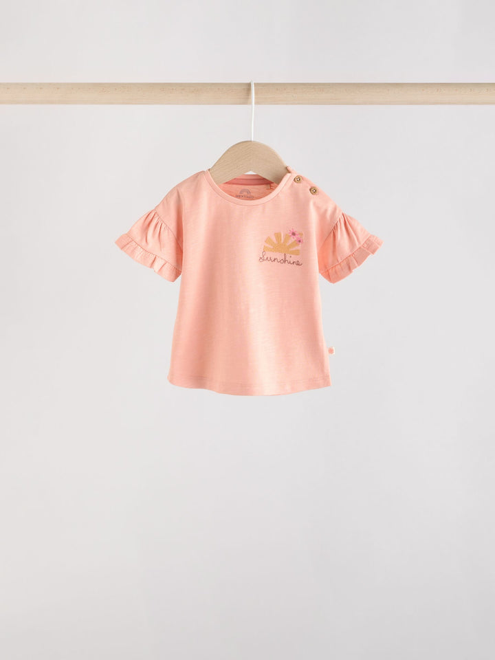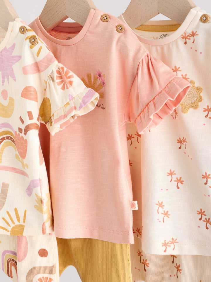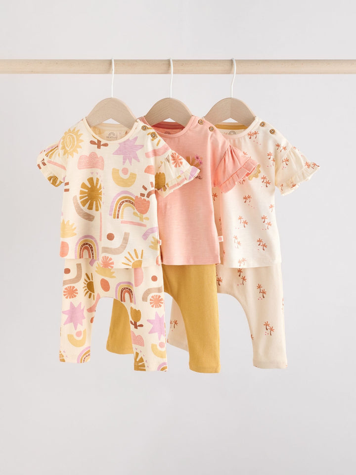 Coral Pink Printed Character Baby Tops and Leggings 6 Pack Set