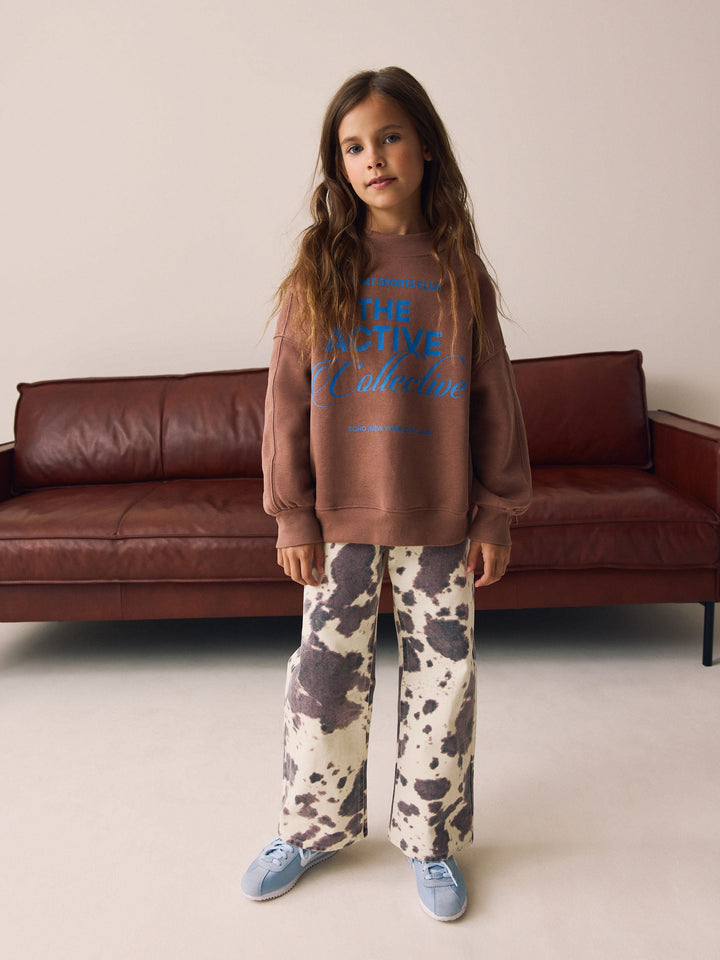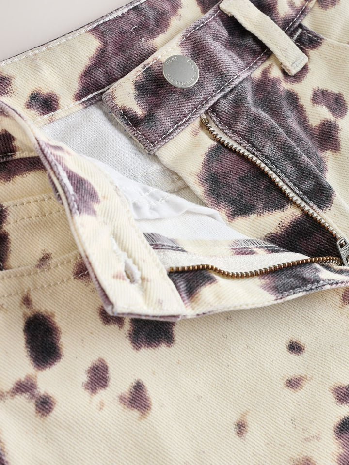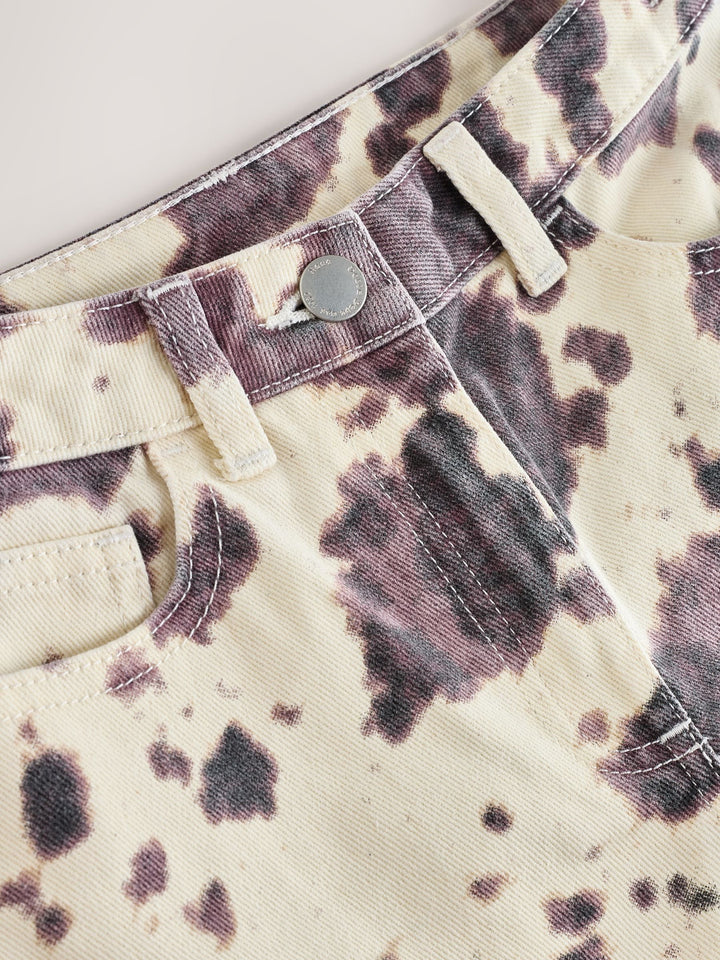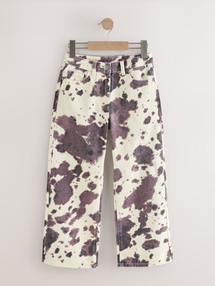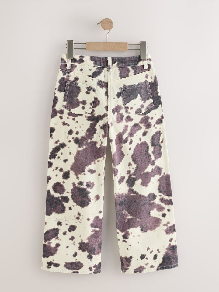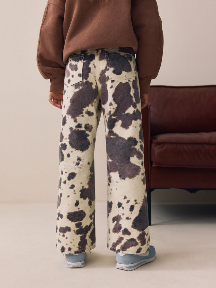 With an on-trend retro look, they'll love these comfortable cow-print wide-leg jeans. Crafted from pure cotton denim, these jeans feature an inner adjustable waist for the perfect fit, with distressed detailing, side and rear pockets and a button and fly fastening. The wide leg and an all-cow print create a relaxed yet fashionable look that is perfect for their everyday style. Wide leg Regular adjustable waist 100% cotton denim Distressed detailing Side and rear pockets Button and fly fastening 100% Cotton. Country of Origin: Bangladesh