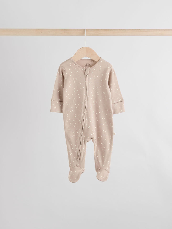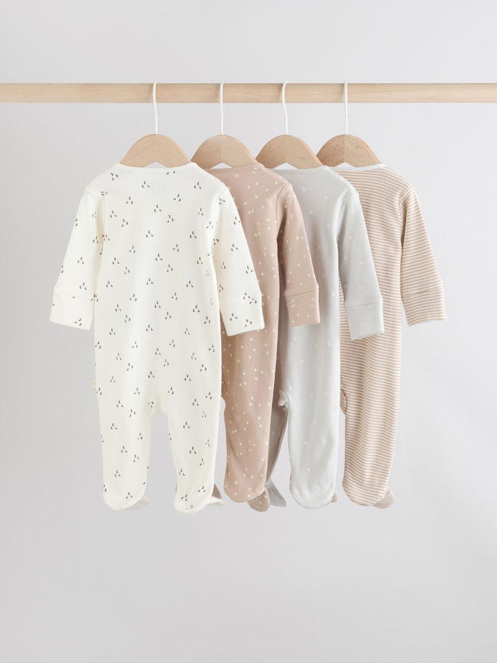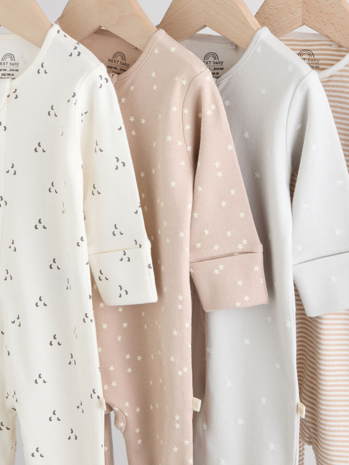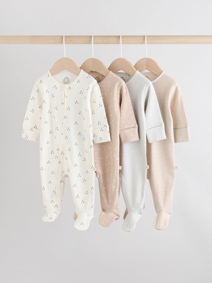 Cream 4 Pack Two Way Zip Baby Sleepsuits (0-2yrs)