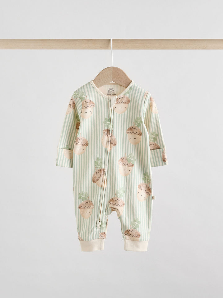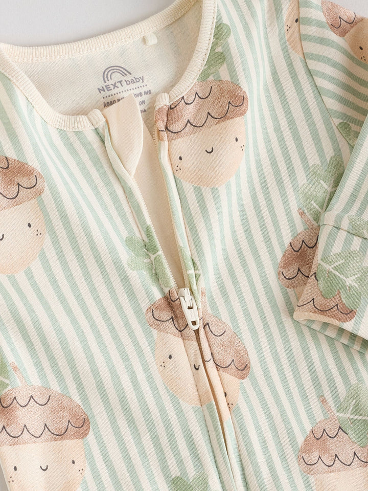 Cream Autumn Pumpkin Two Way Zip Footless Baby Sleepsuits 3 Pack (0mths-3yrs)