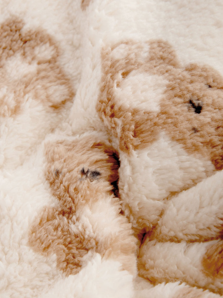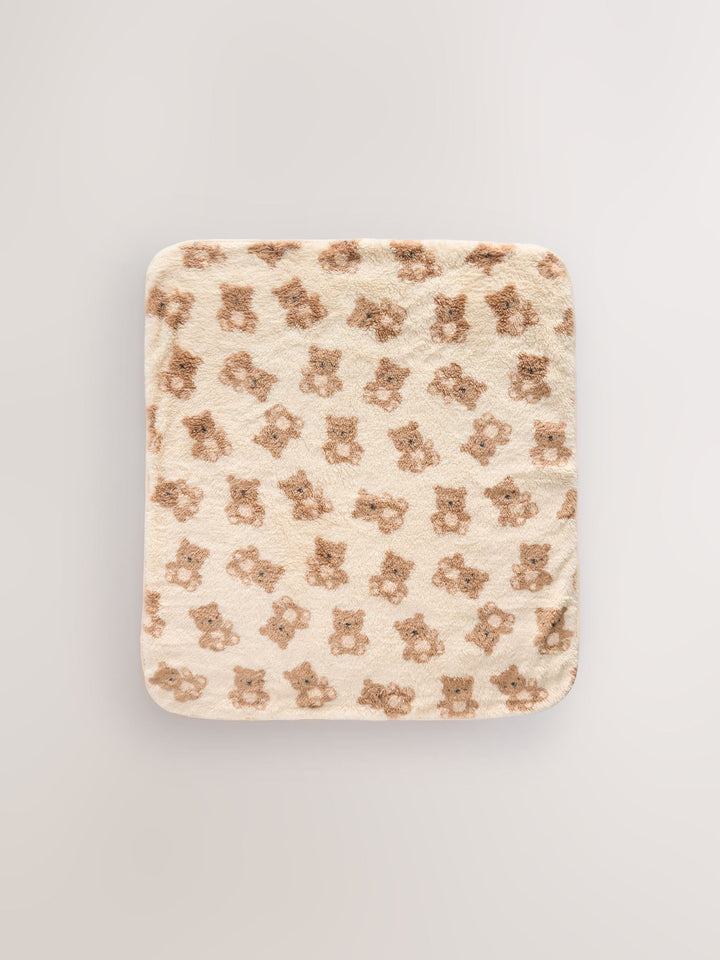 A must-have for the colder months, this cosy cream baby blanket is made from a soft fleece fabric with a cotton trim, perfect for the indoors or for taking out in the pram, finished in an all-over baby bear print. Soft fleece fabric Baby size Cotton trim Bear print Length 80cm Width 70cm Machine washable. Main 100% Recycled polyester. Trim 100% Cotton. Country of Origin: China Warning: Keep away from fire and flames.