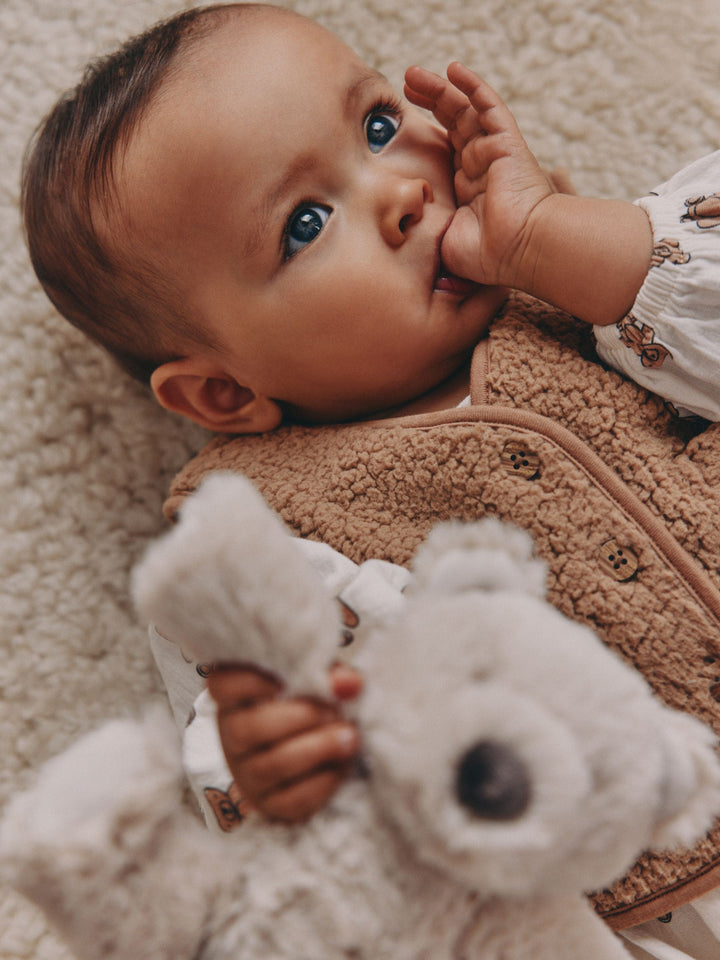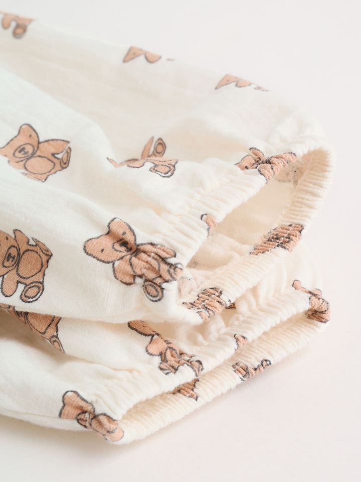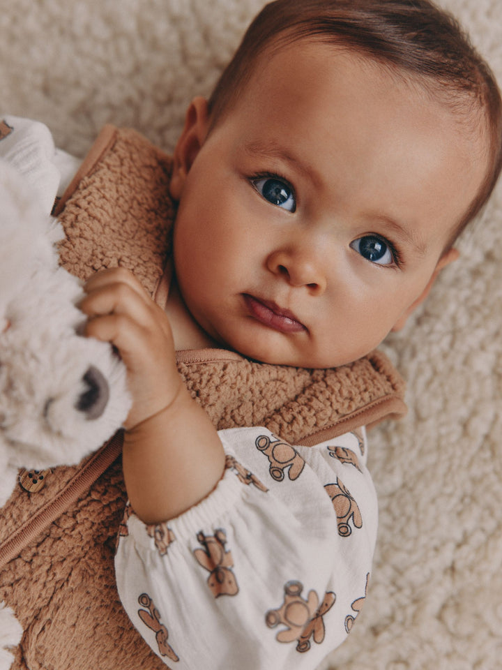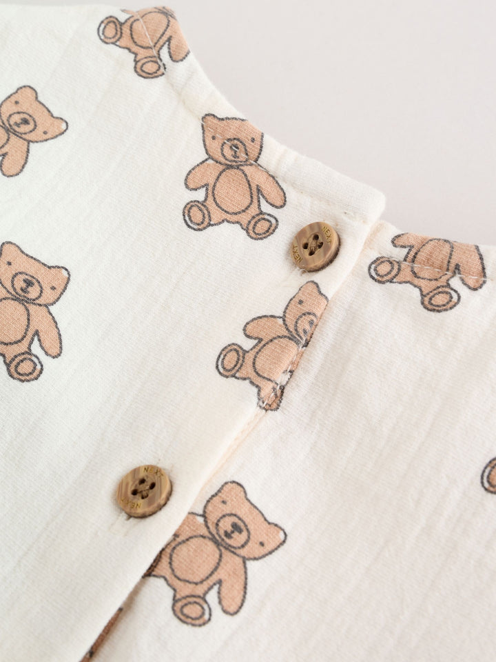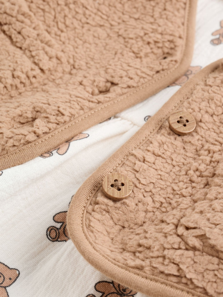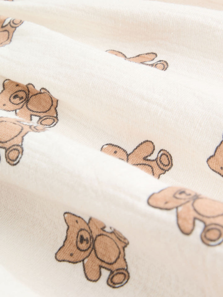Cream/ Brown Bear Long Sleeve Baby Dress and Waistcoats with Tights 3 Piece Set (0mths-2yrs)