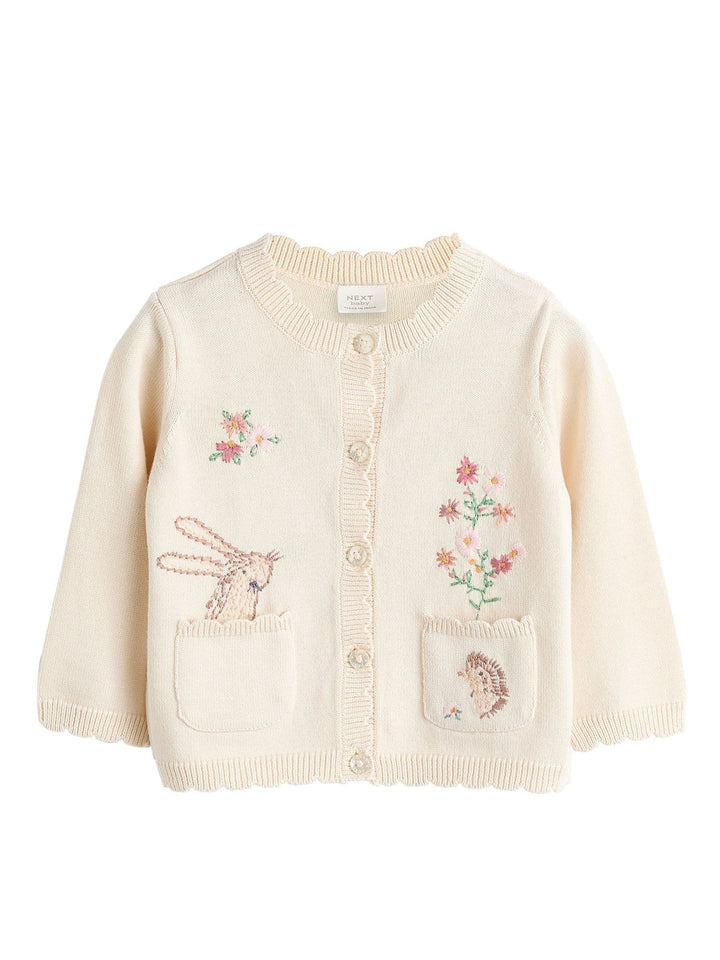 Cream Bunny 100% Cotton Pointelle Knitted Floral Flower Baby Cardigan (0mths-3yrs)