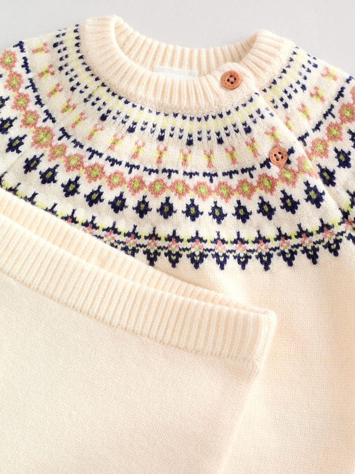 Cream Fairisle Baby Knitted Top and Leggings Set (0mths-2yrs)
