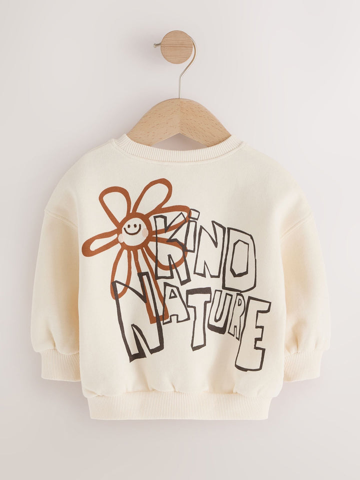 Cream Flower Graphic Print Crew Neck Sweatshirt (3mths-7yrs)