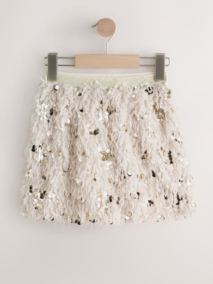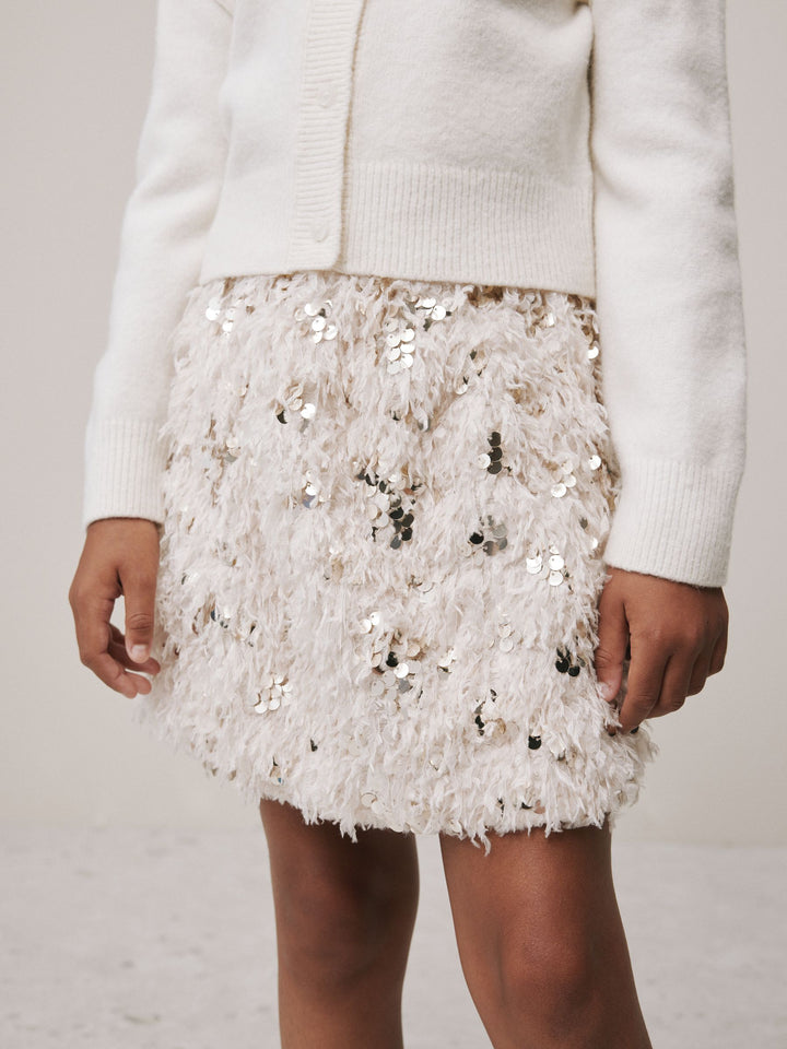 Cream Fluffy Sequin Skirt (3-16yrs)