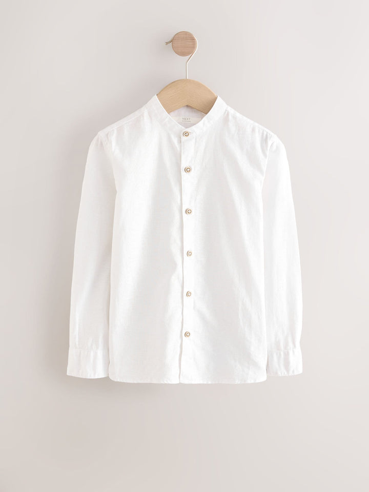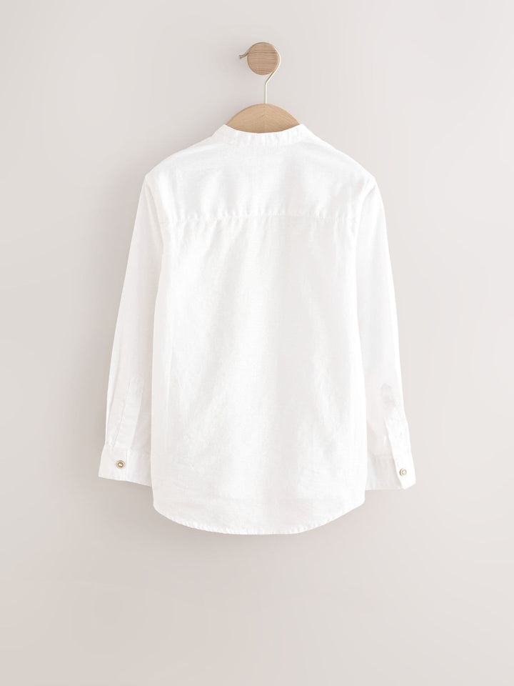 Cream Grandad Collar Linen Mix Long Sleeve Shirt (3-16yrs)